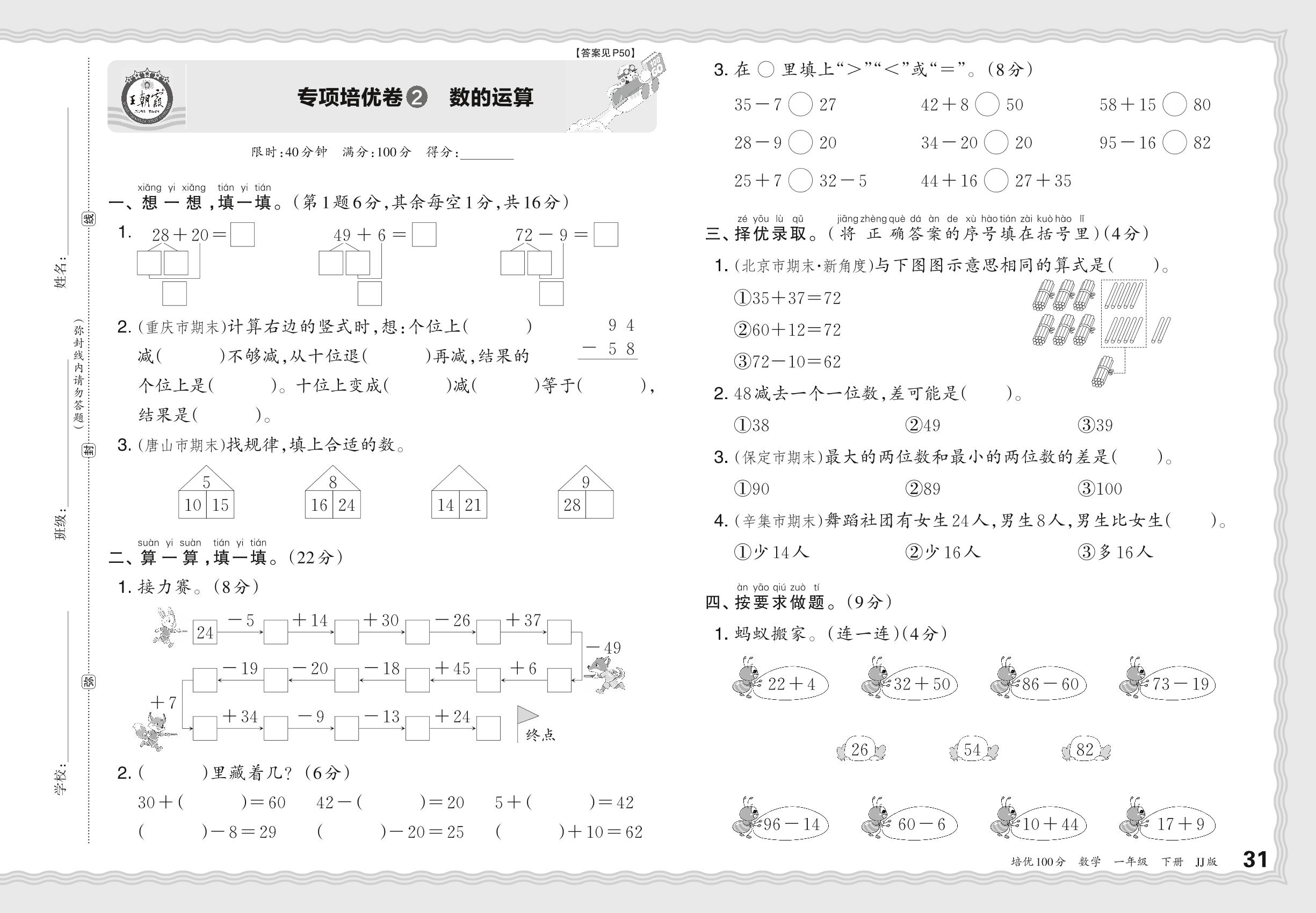 2024春下册一年级数学冀教版 期末专项卷PY版·数的运算【2】