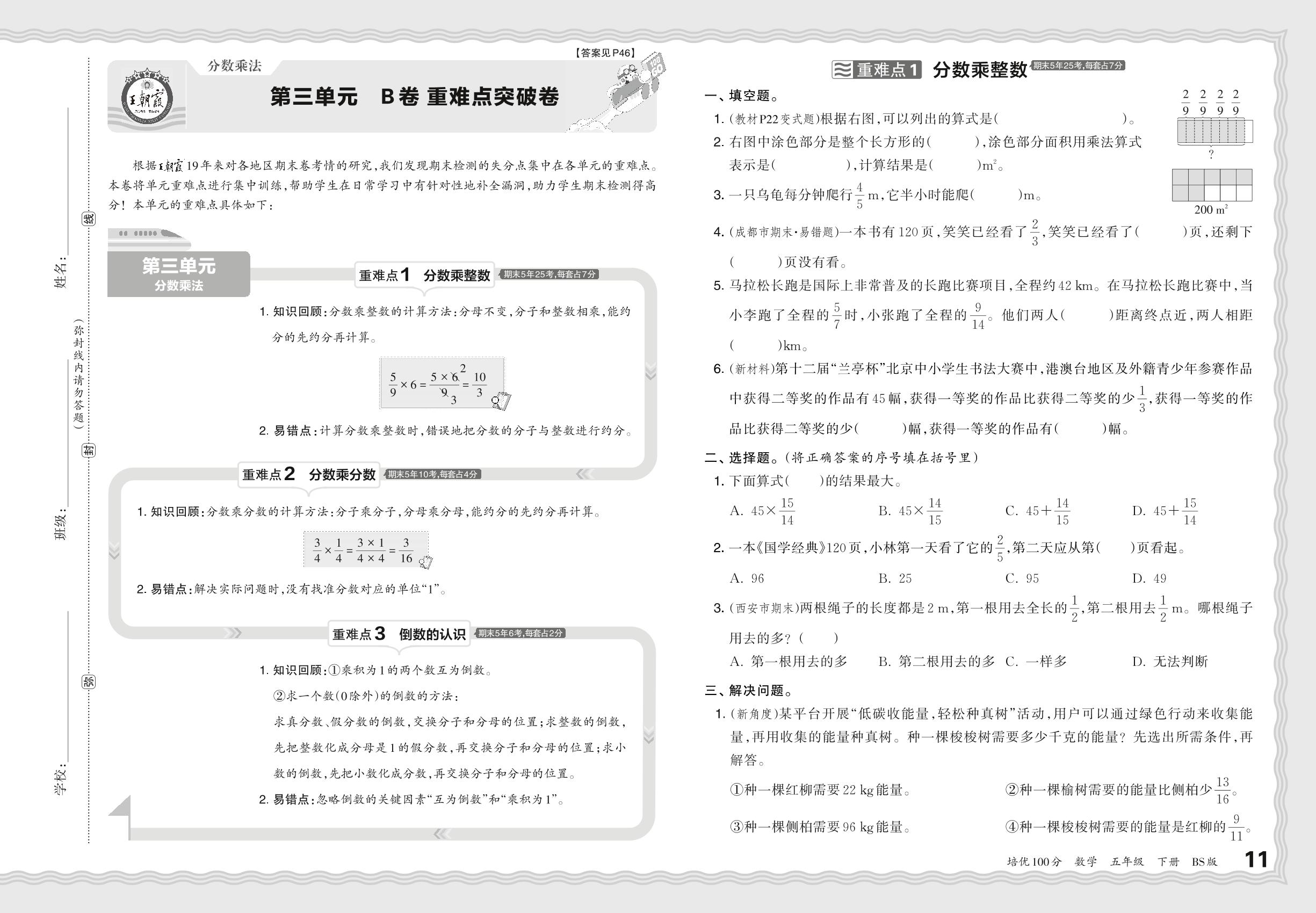 2024春下册五年级数学北师版 第三单元 B卷 重难点突破卷