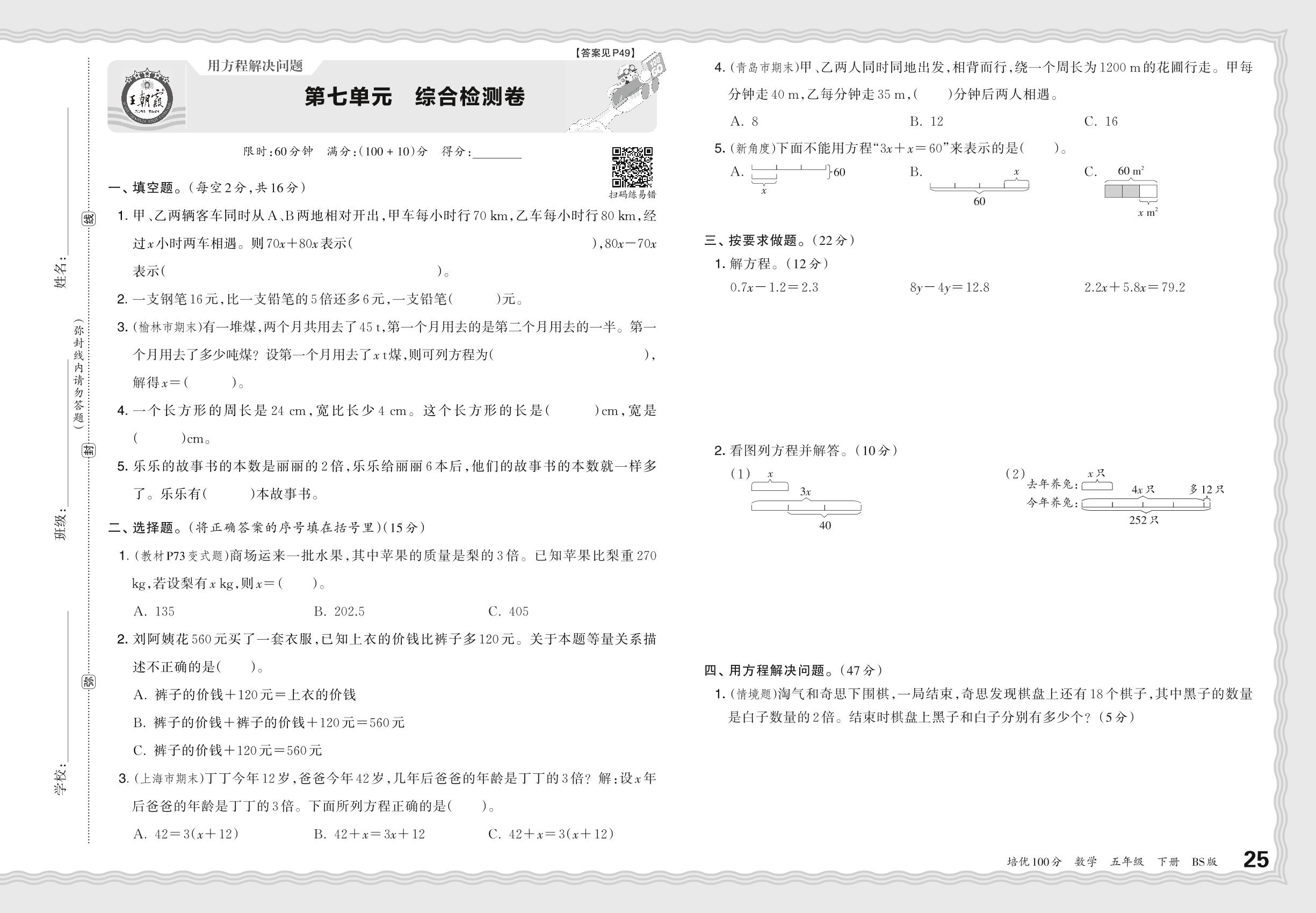 2024春下册五年级数学北师版 第七单元 综合检测卷
