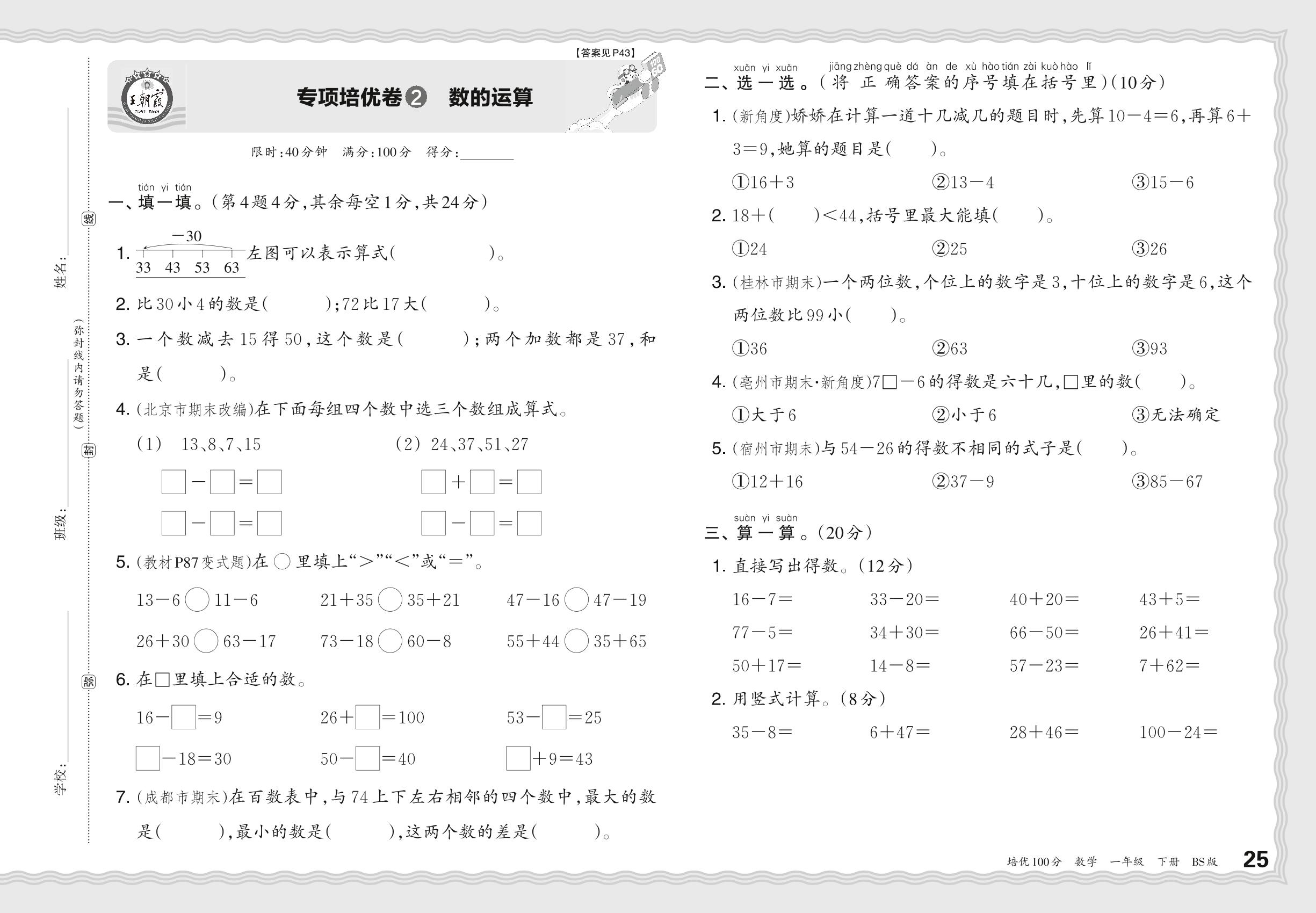 2024春下册一年级数学北师版 期末专项卷PY版·数的运算【2】