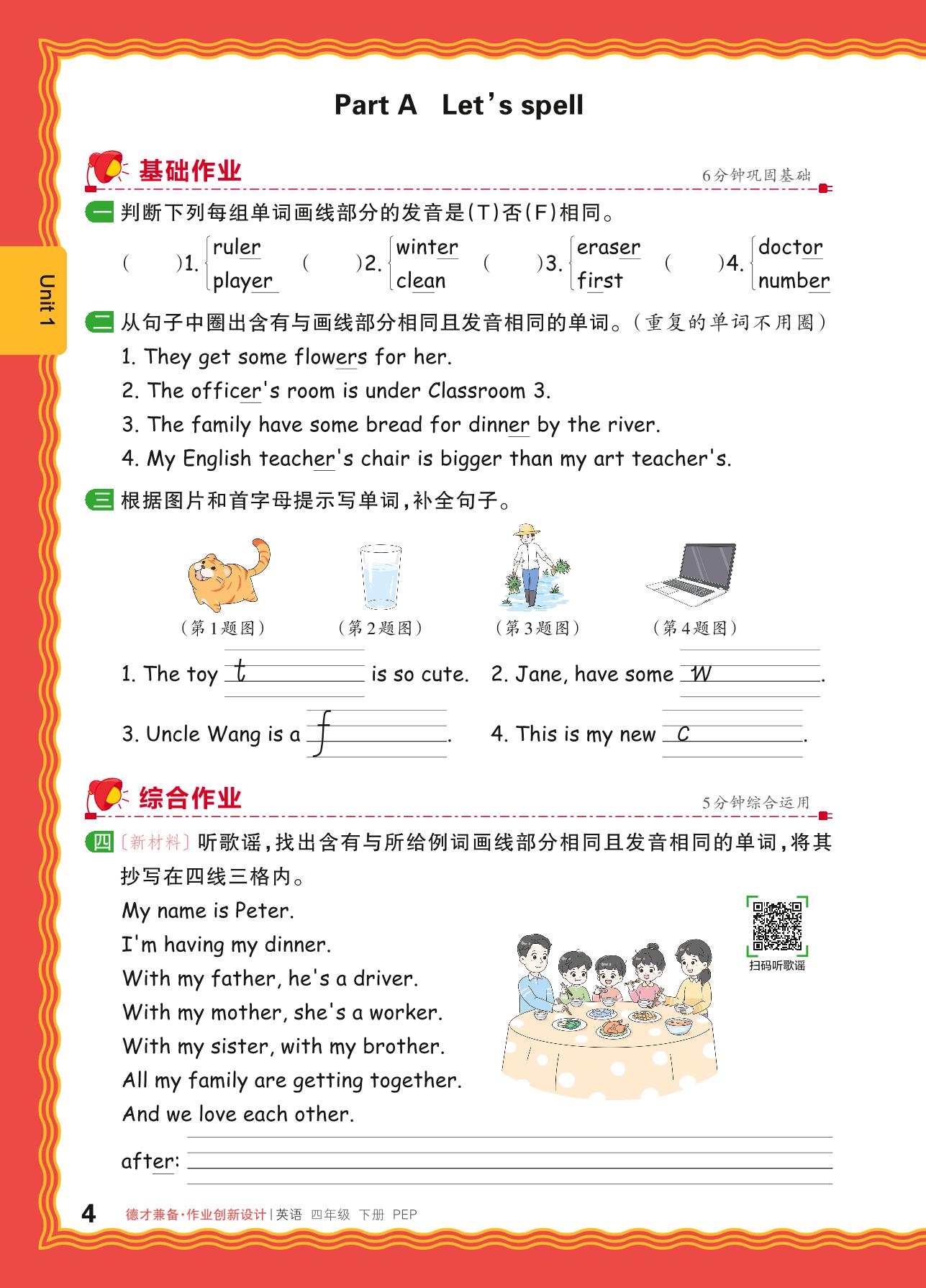 2024春下册四年级英语人教PEP版 Unit 1—Part A Let’s spell