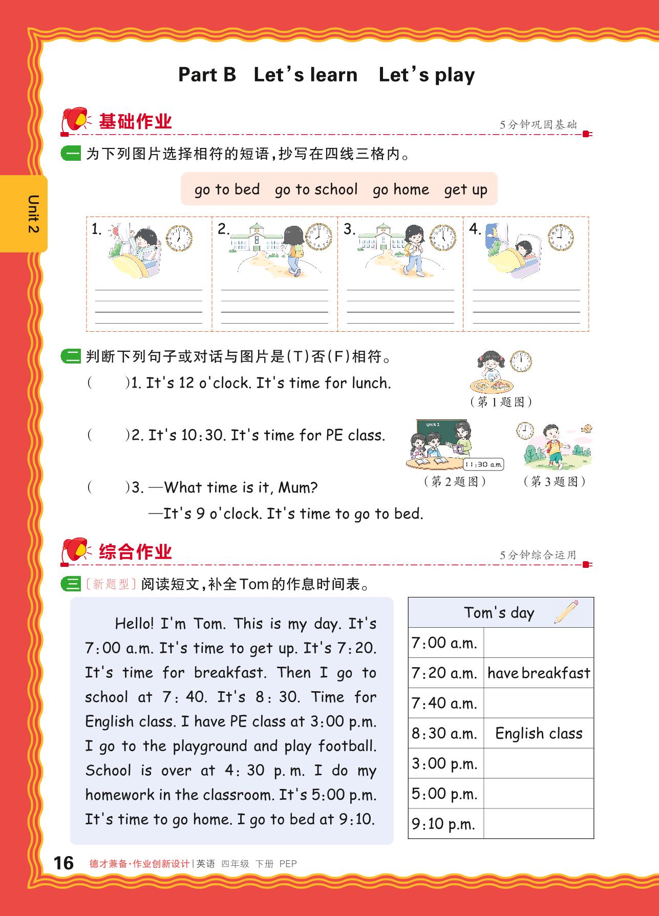 四年级英语人教PEP版(三起始)下册课时作业
