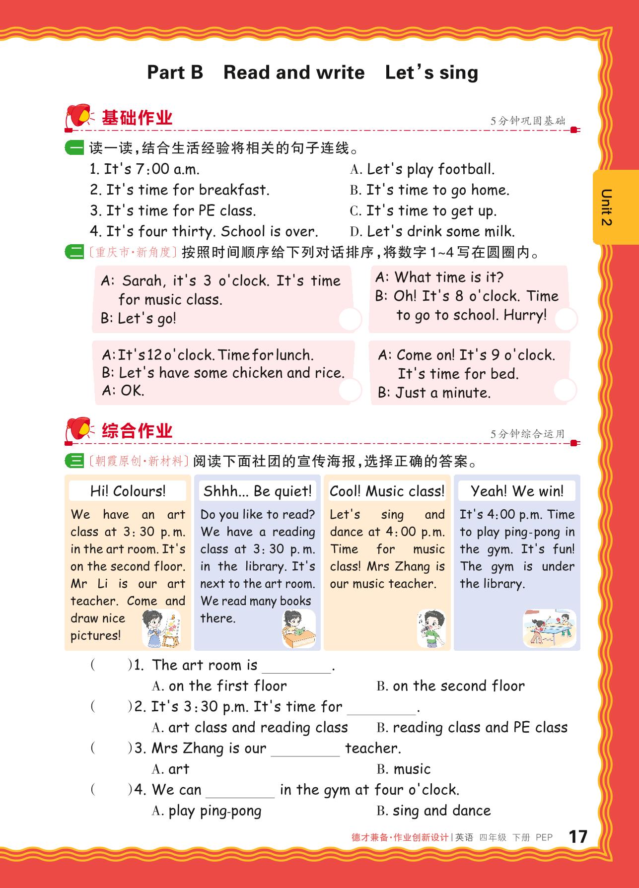 2024春下册四年级英语人教PEP版 Unit 2—Part B Read and write Let’s sing