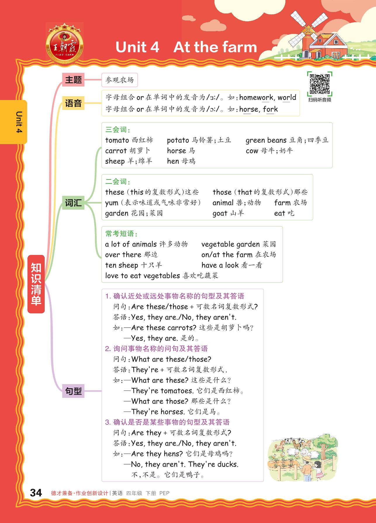 2024春下册四年级英语人教PEP版 Unit 4 知识清单