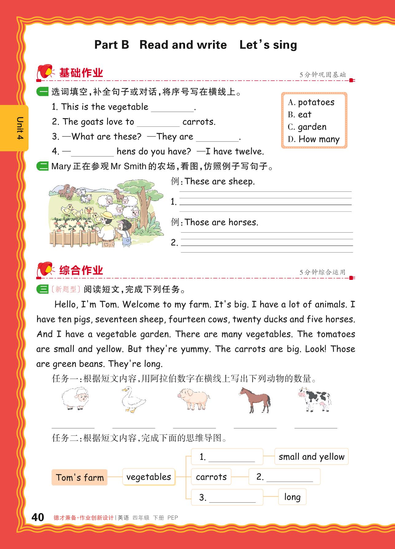 2024春下册四年级英语人教PEP版 Unit 4 Part B Read and write Let’s sing