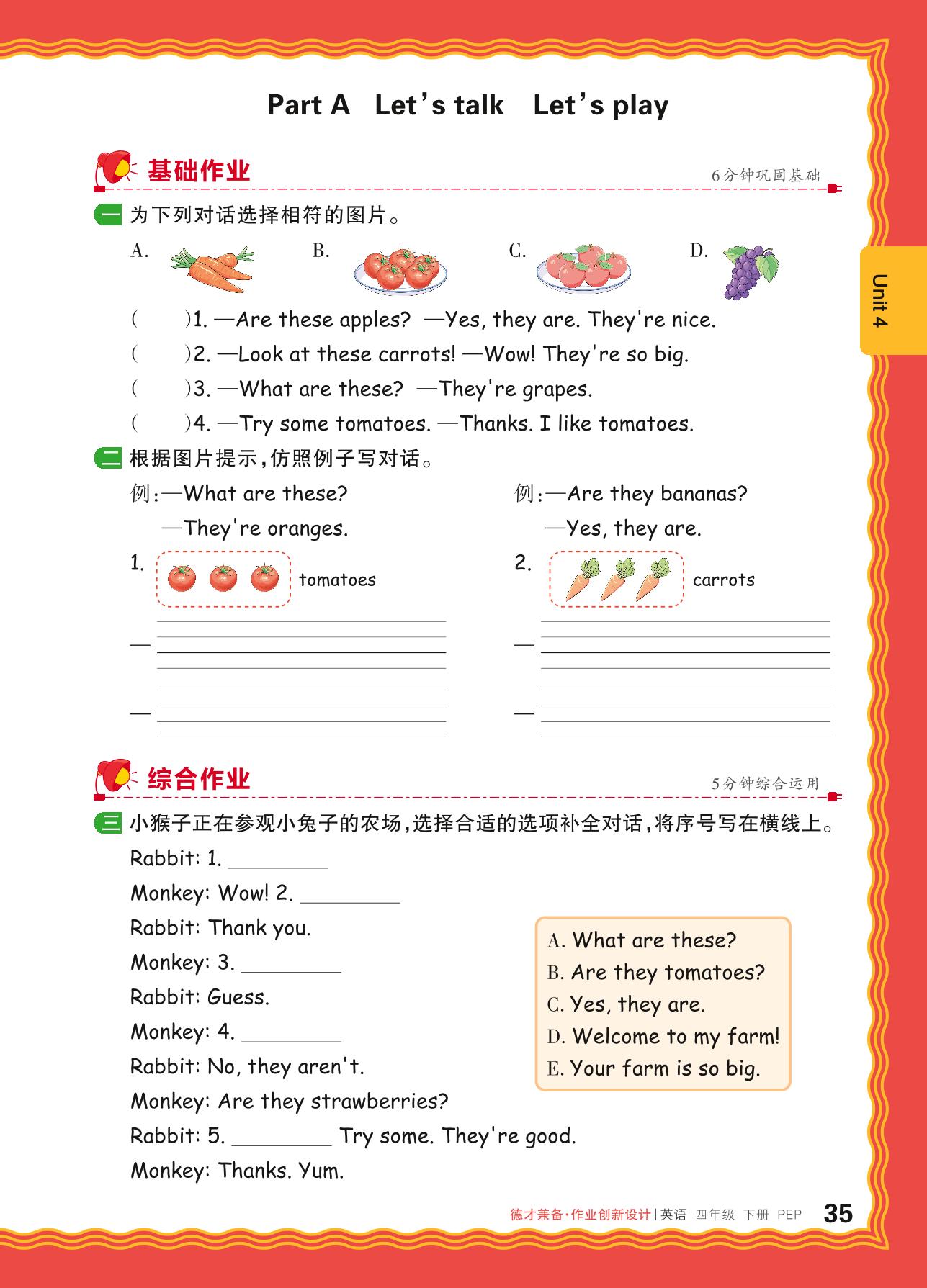 2024春下册四年级英语人教PEP版 Unit 4—Part A Let’s talk Let’s play