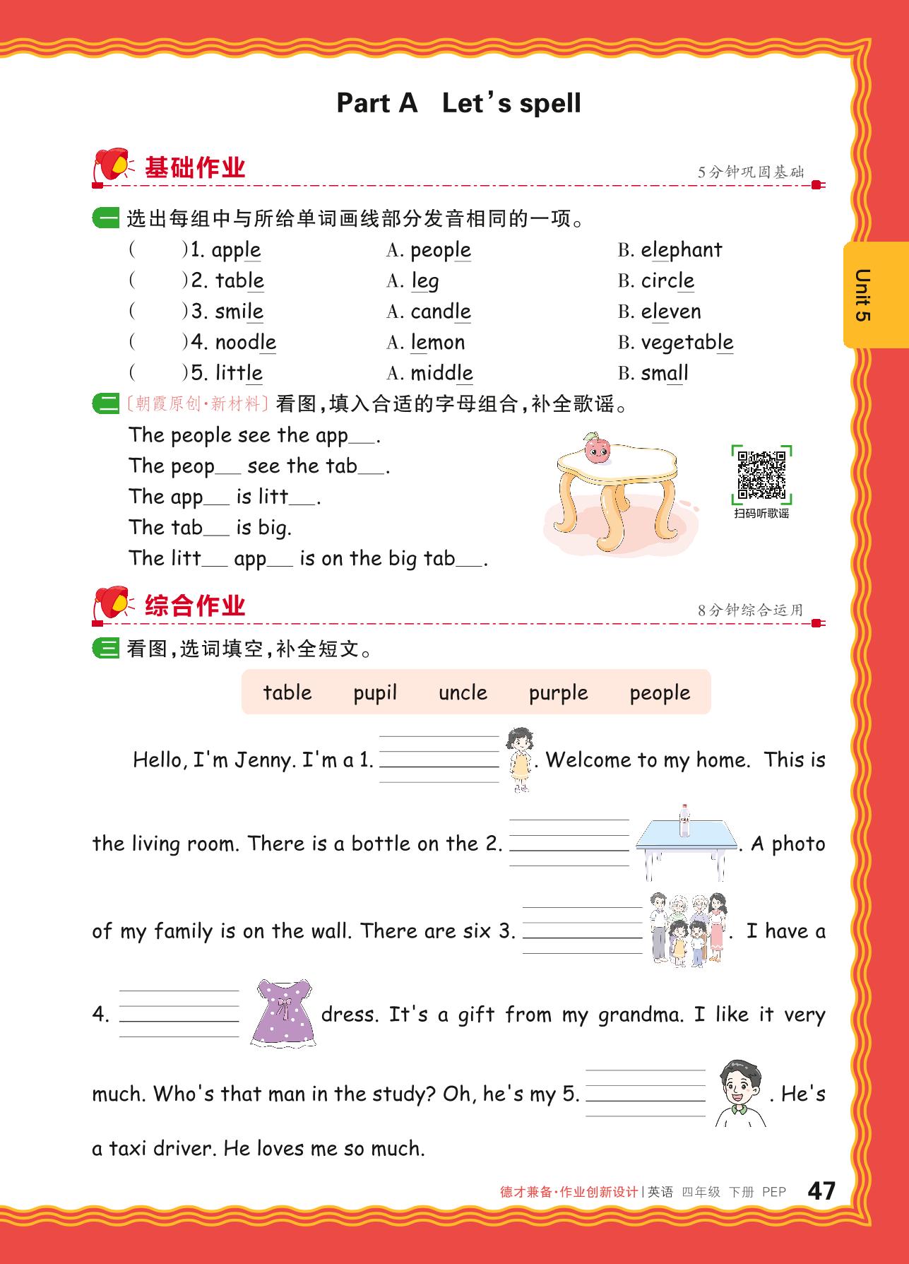 2024春下册四年级英语人教PEP版 Unit 5—Part A Let’s spell