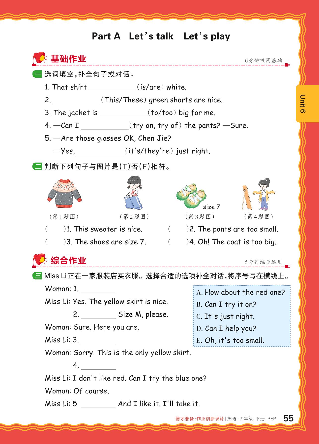 2024春下册四年级英语人教PEP版 Unit 6—Part A Let’s talk Let’s play