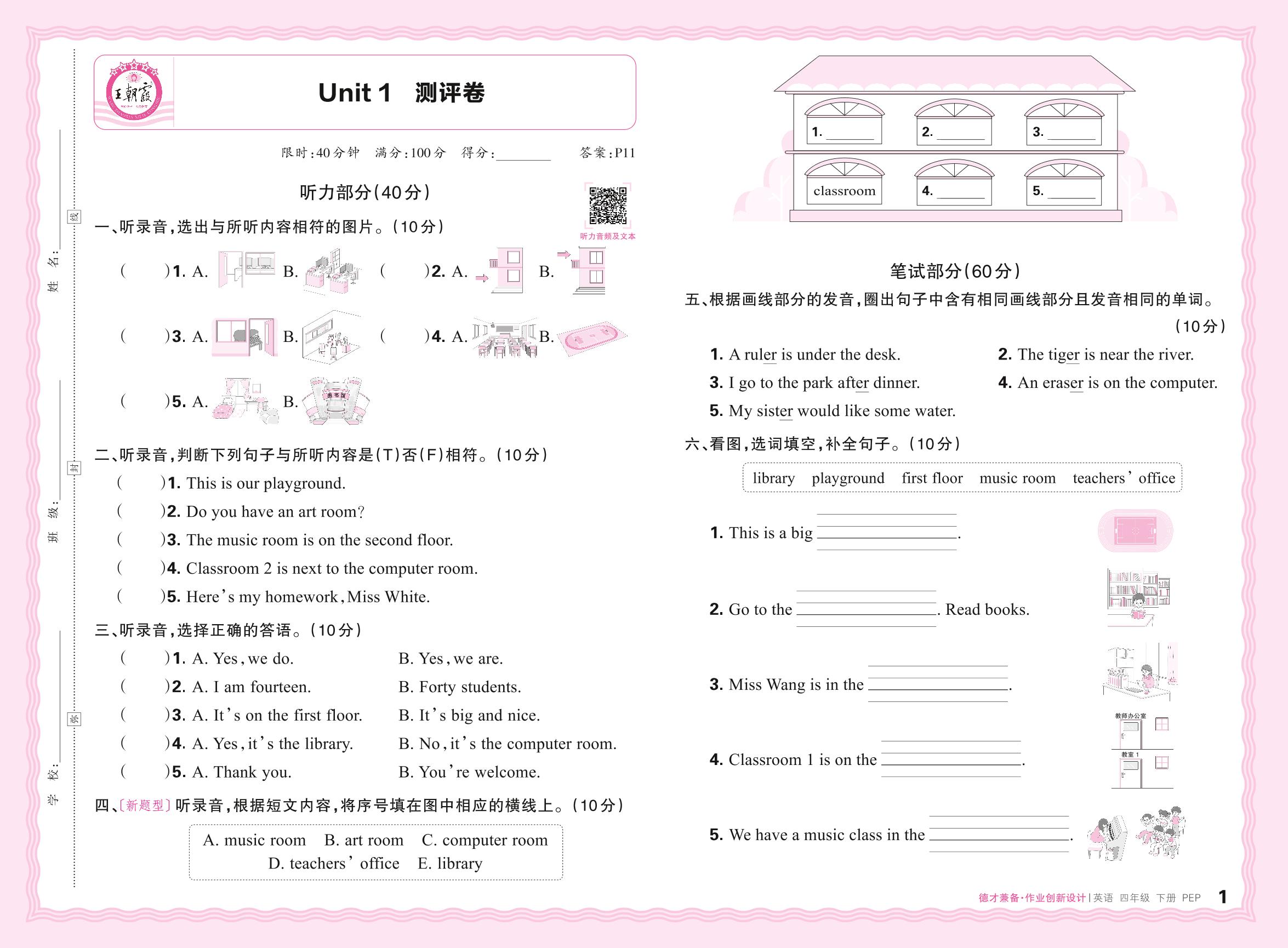 2024春下册四年级英语人教PEP版 Unit 1 测评卷