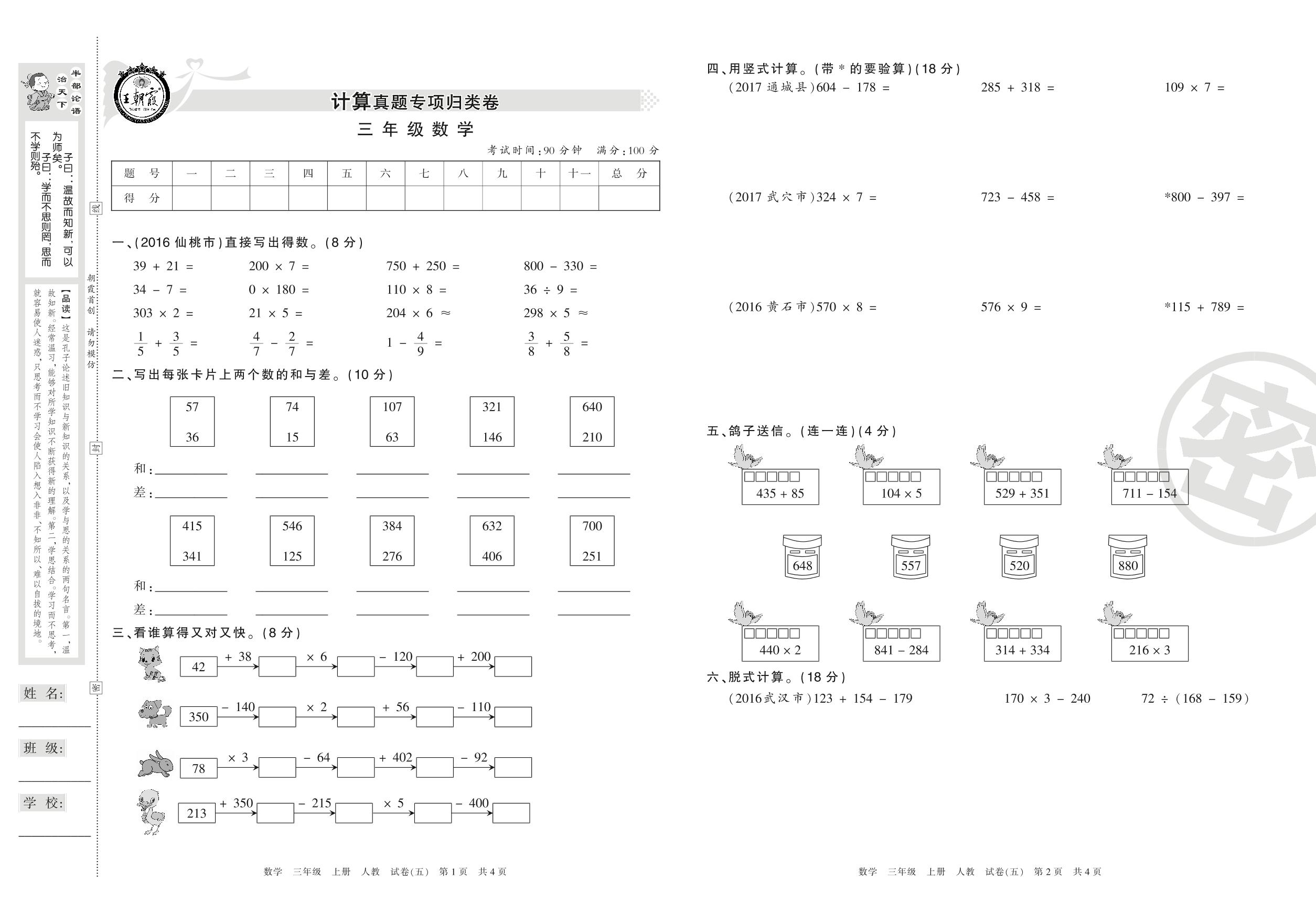 王朝霞期末专项卷三年级上册数学(人教版)_R210804105119【5】