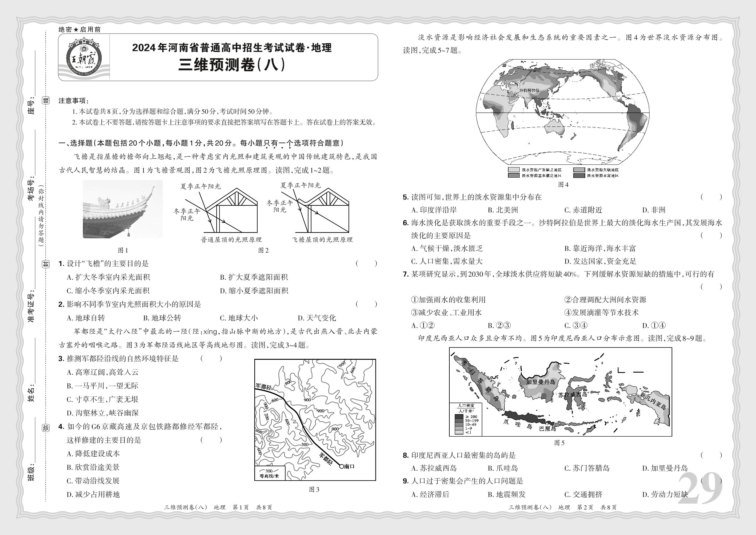 2024年河南省普通高中招生考试试卷·地理 三维预测卷(八)