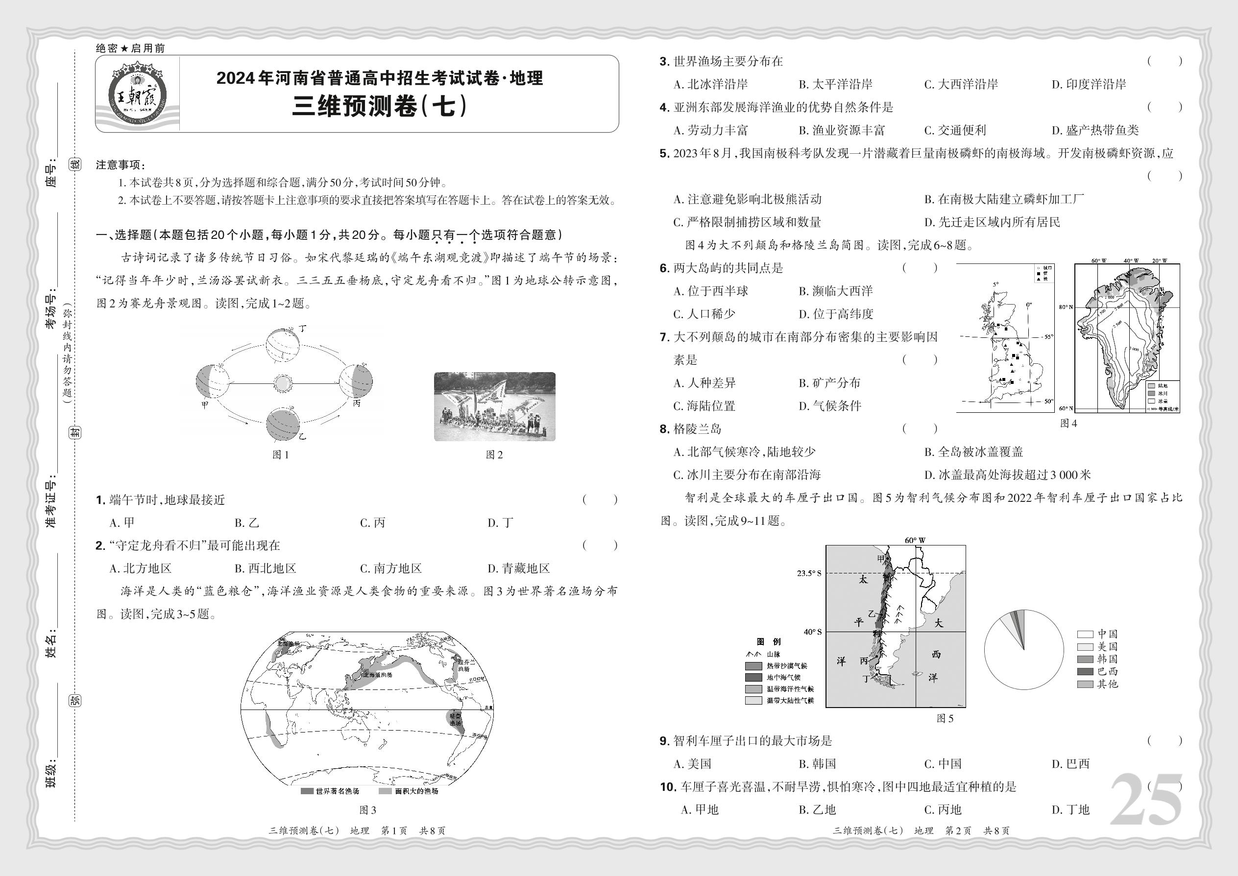 2024年河南省普通高中招生考试试卷·地理 三维预测卷(七)