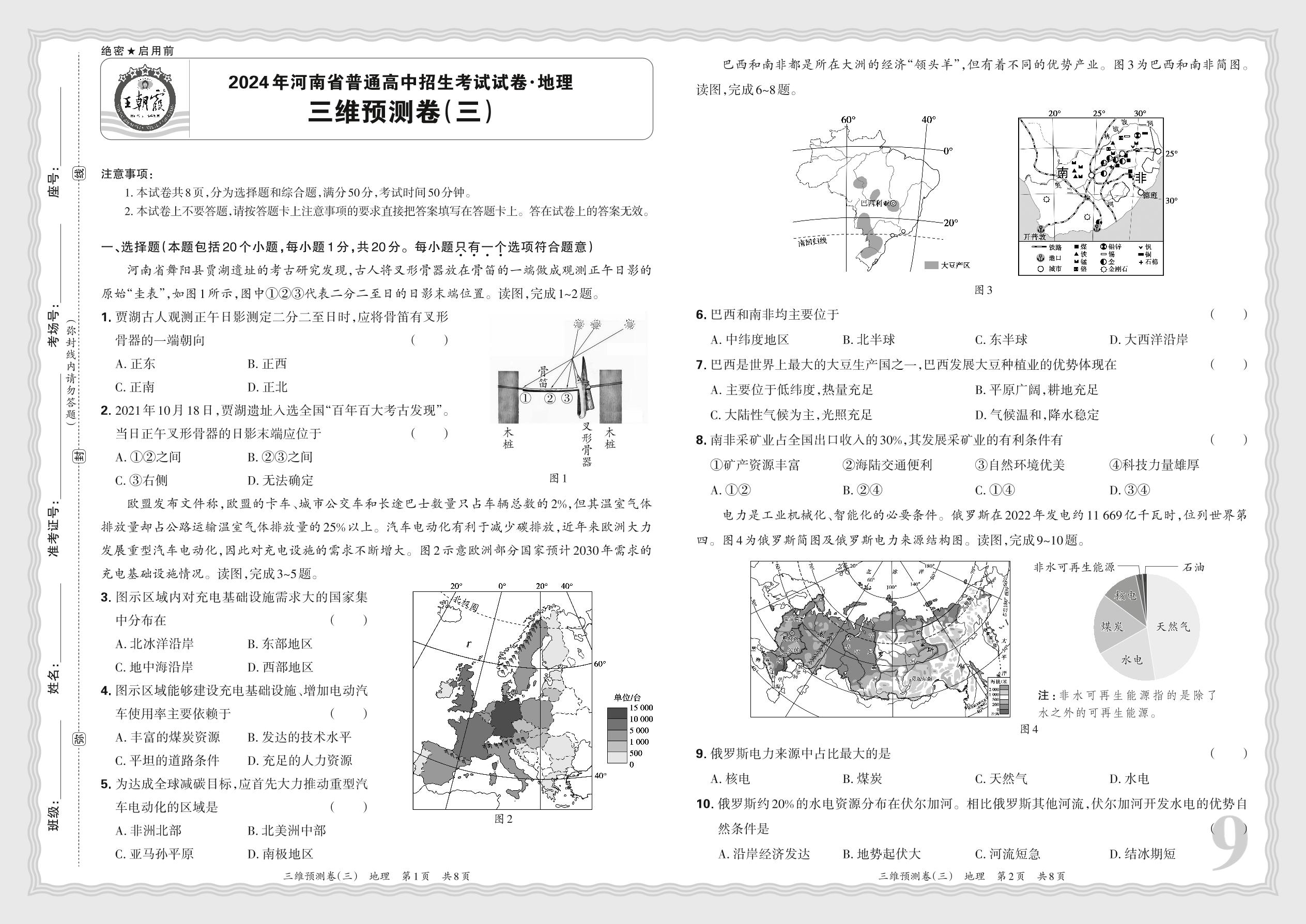 2024年河南省普通高中招生考试试卷·地理 三维预测卷(三)