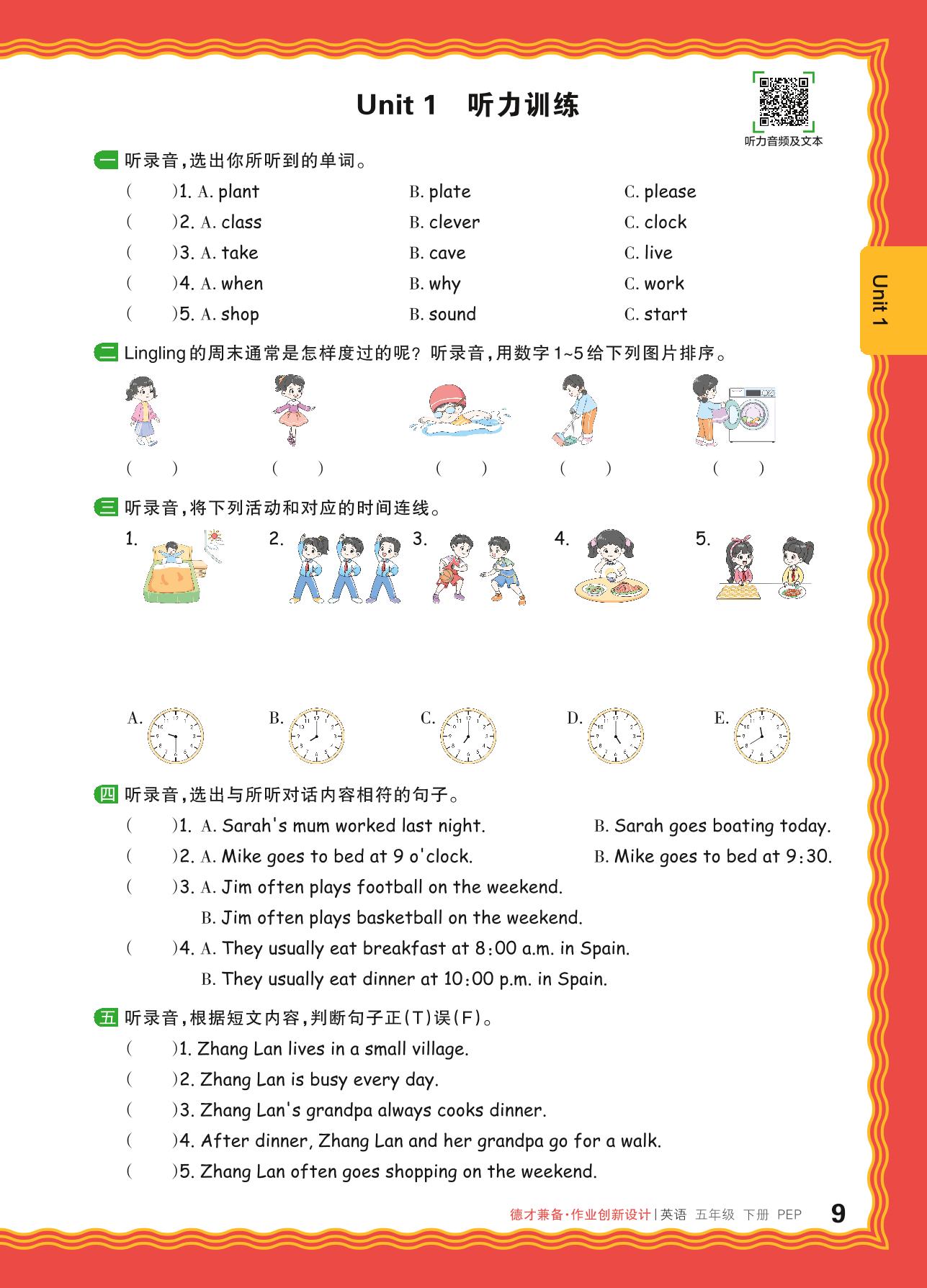 2024春下册五年级英语人教PEP版 Unit 1 听力训练