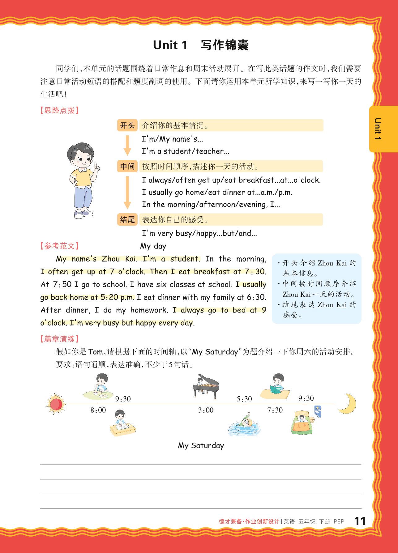 2024春下册五年级英语人教PEP版 Unit 1 写作锦囊