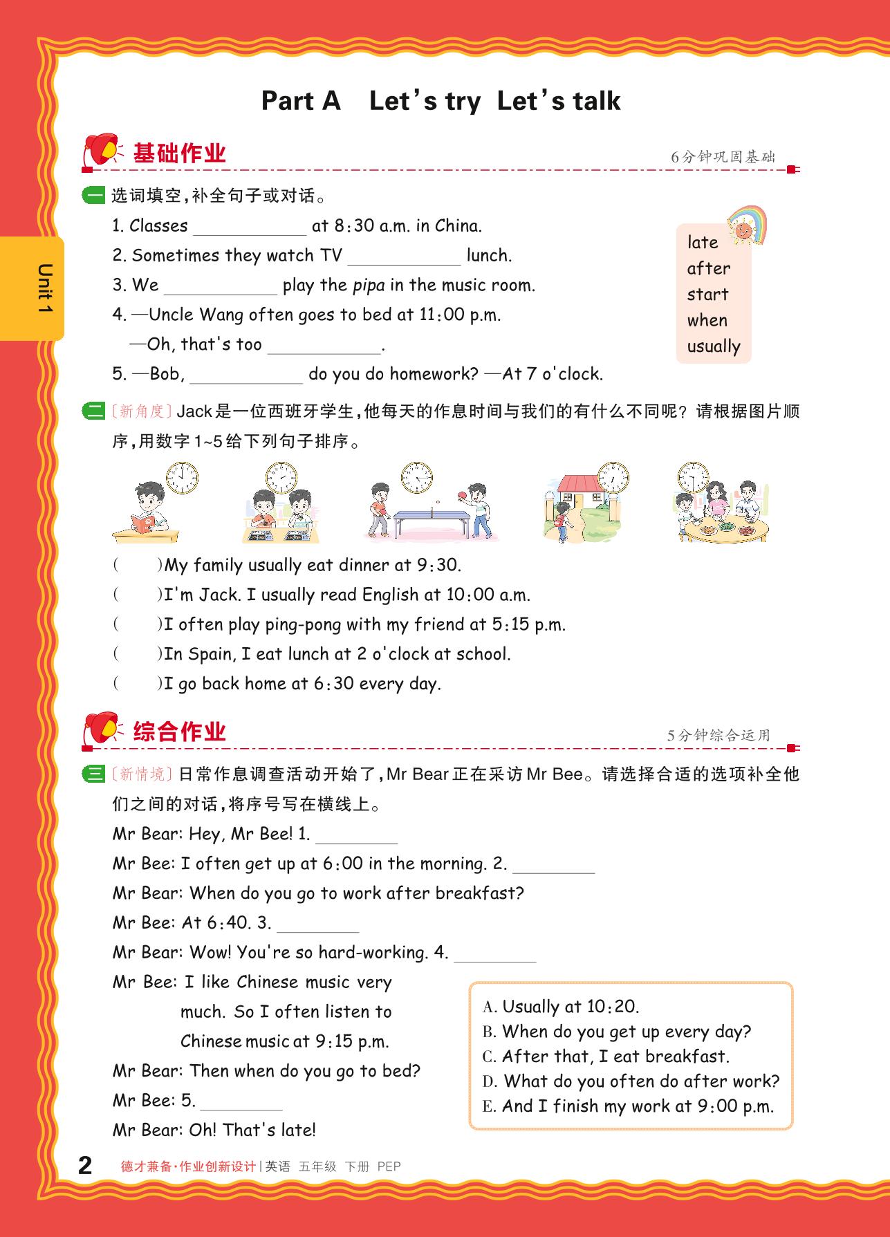 2024春下册五年级英语人教PEP版 Unit 1—Part A Let’s try Let’s talk