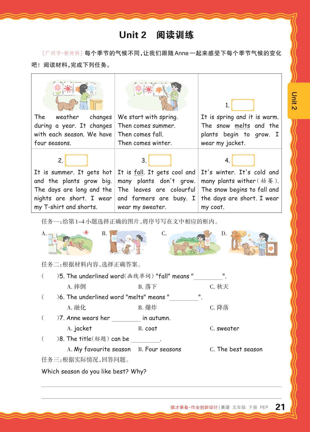 2024春下册五年级英语人教PEP版 Unit 2 阅读训练
