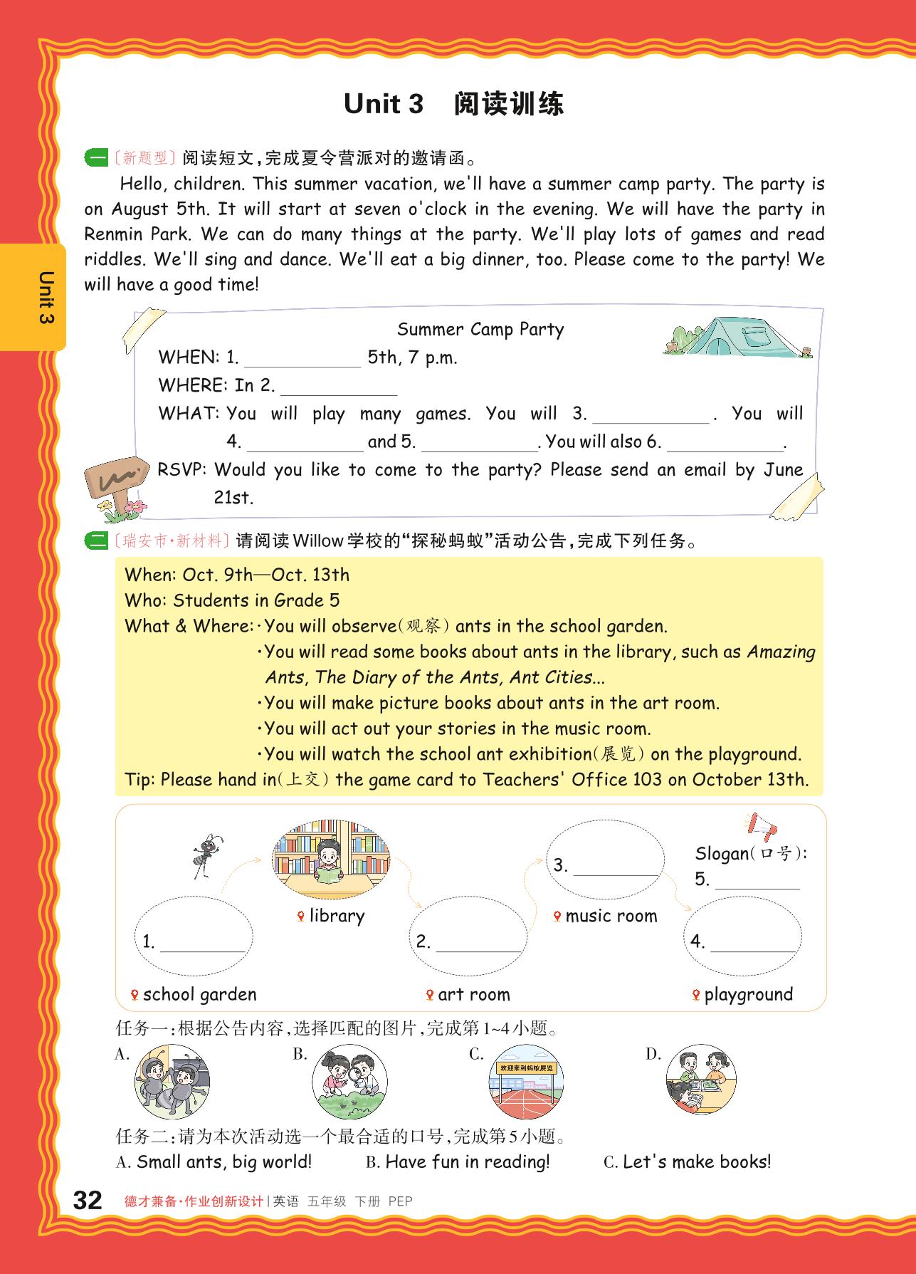 2024春下册五年级英语人教PEP版 Unit 3 阅读训练