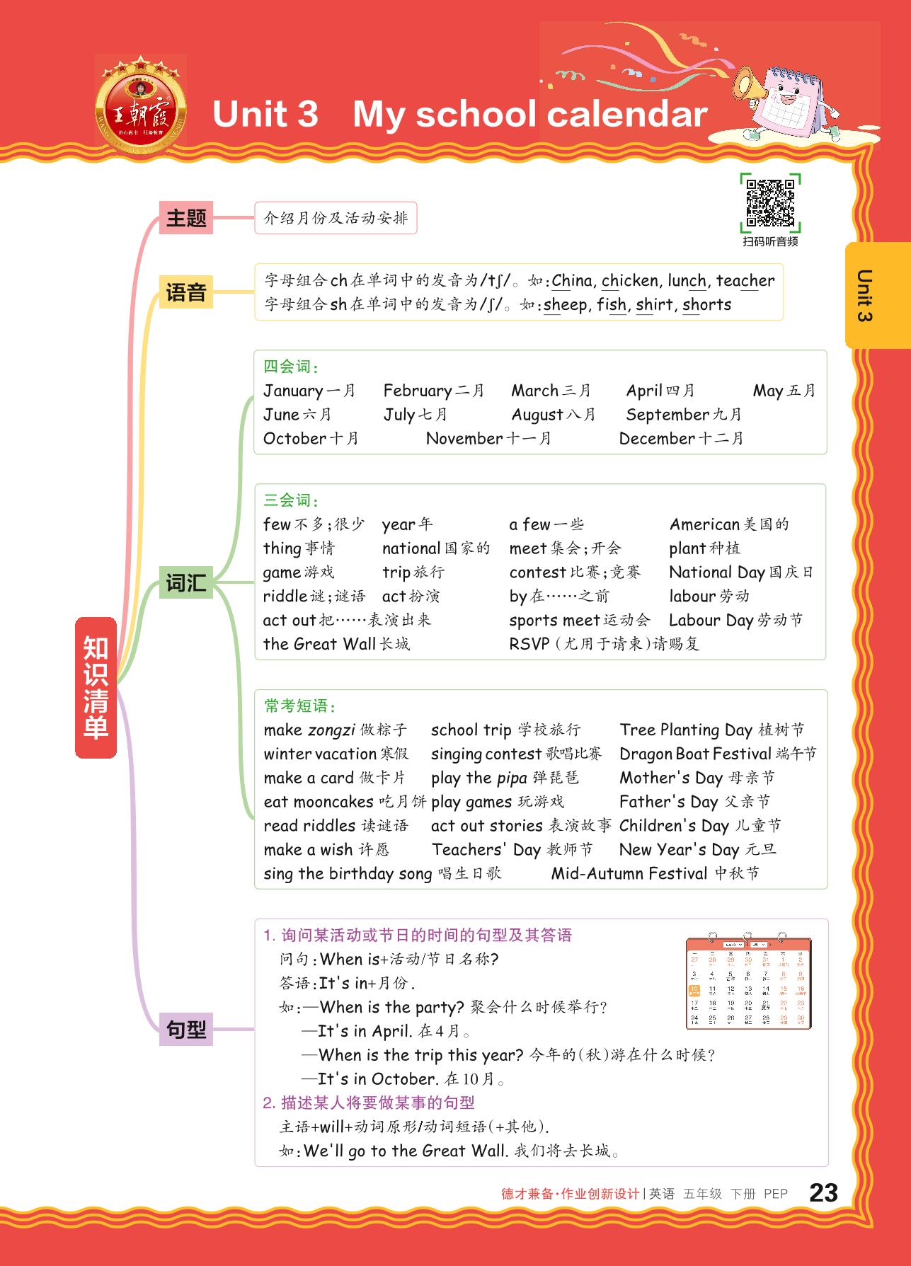2024春下册五年级英语人教PEP版 Unit 3 知识清单