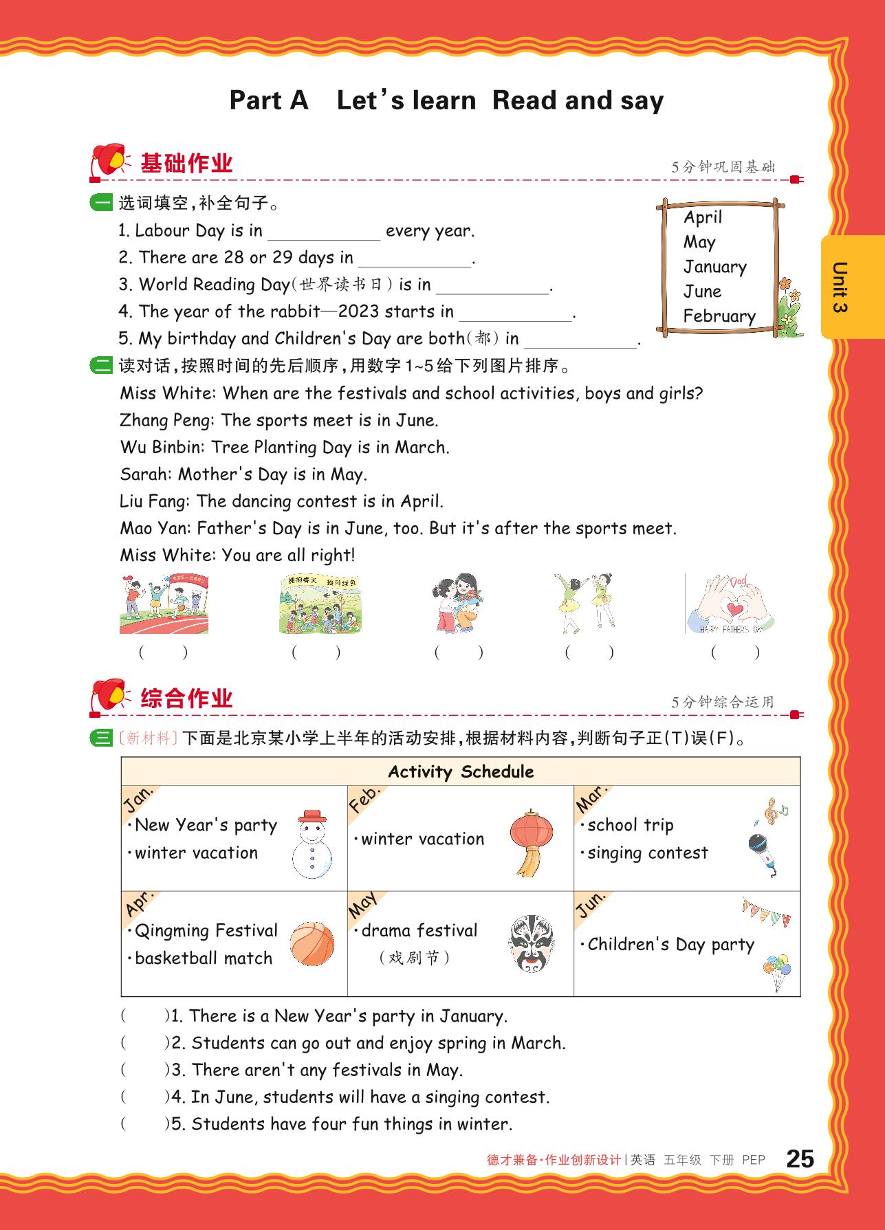2024春下册五年级英语人教PEP版 Unit 3—Part A Let’s learn Read and say