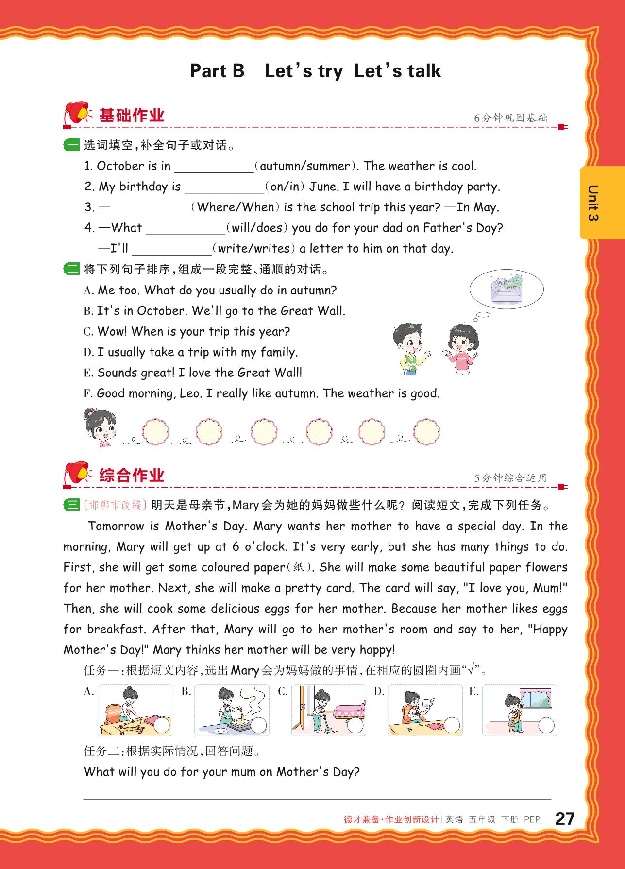 2024春下册五年级英语人教PEP版 Unit 3—Part B Let’s try Let’s talk