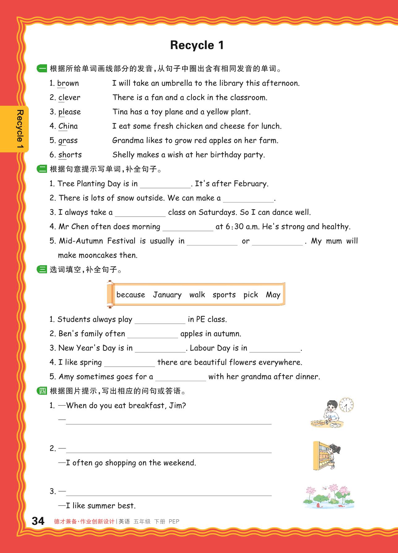 2024春下册五年级英语人教PEP版 Recycle 1_R240124144158950