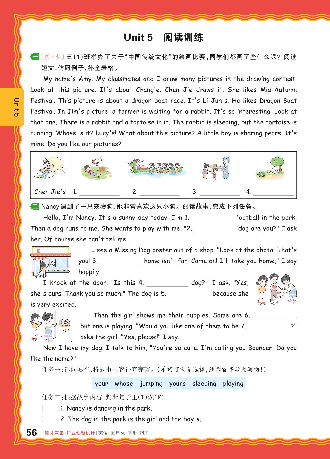 2024春下册五年级英语人教PEP版 Unit 5 阅读训练