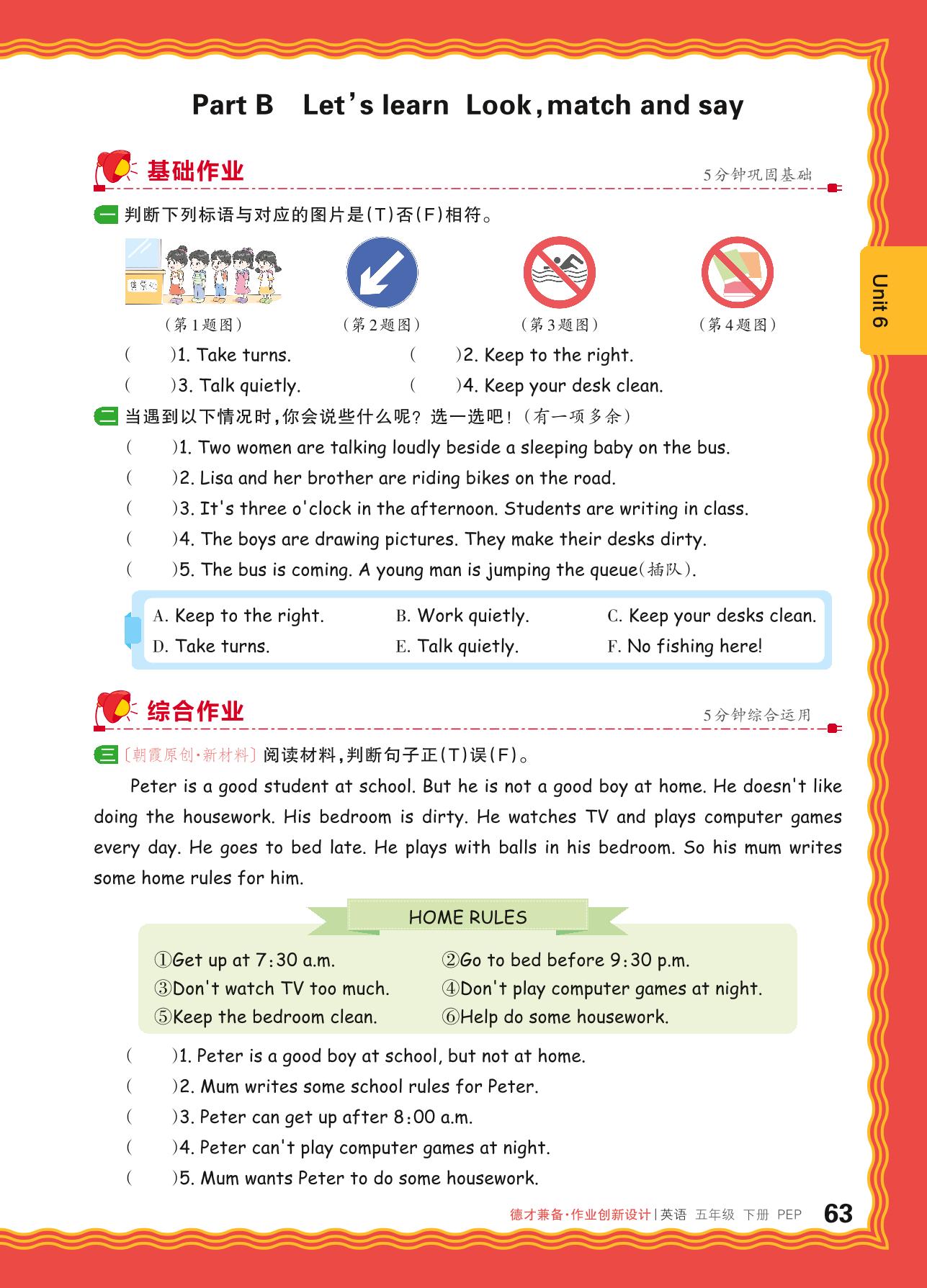 2024春下册五年级英语人教PEP版 Unit 6—Part B Let’s learn Look,match and say