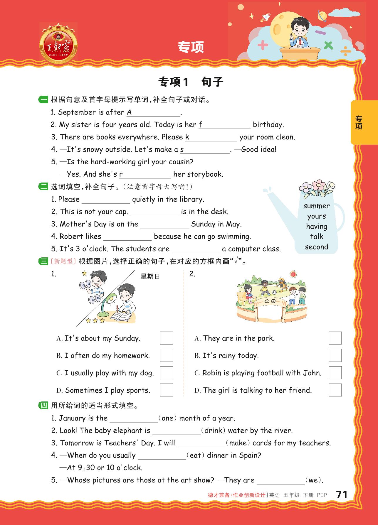 2024春下册五年级英语人教PEP版 期末专项卷DC版·句子【1】