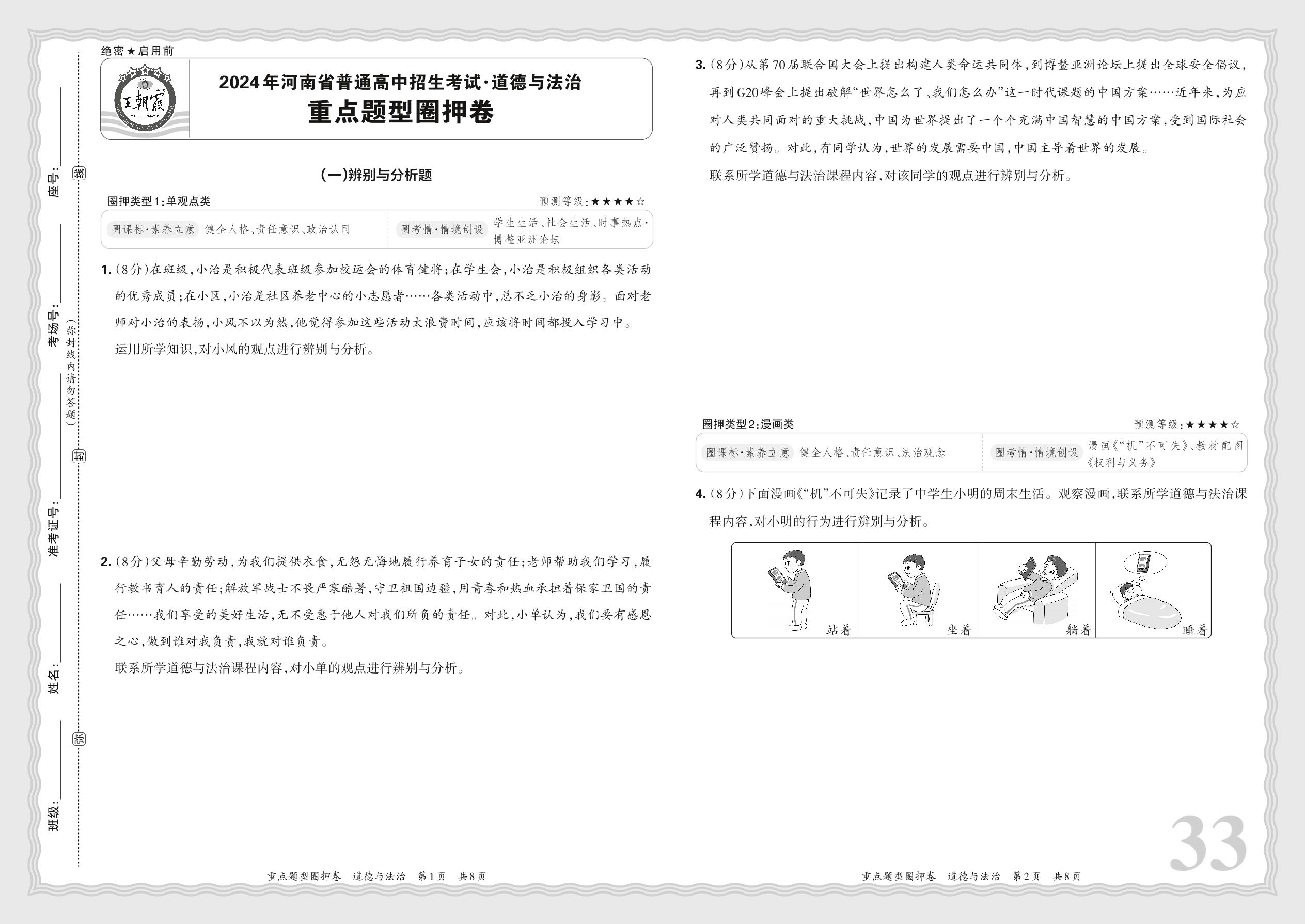 2024年河南省普通高中招生考试试卷·道德与法治 重点题型圈押卷