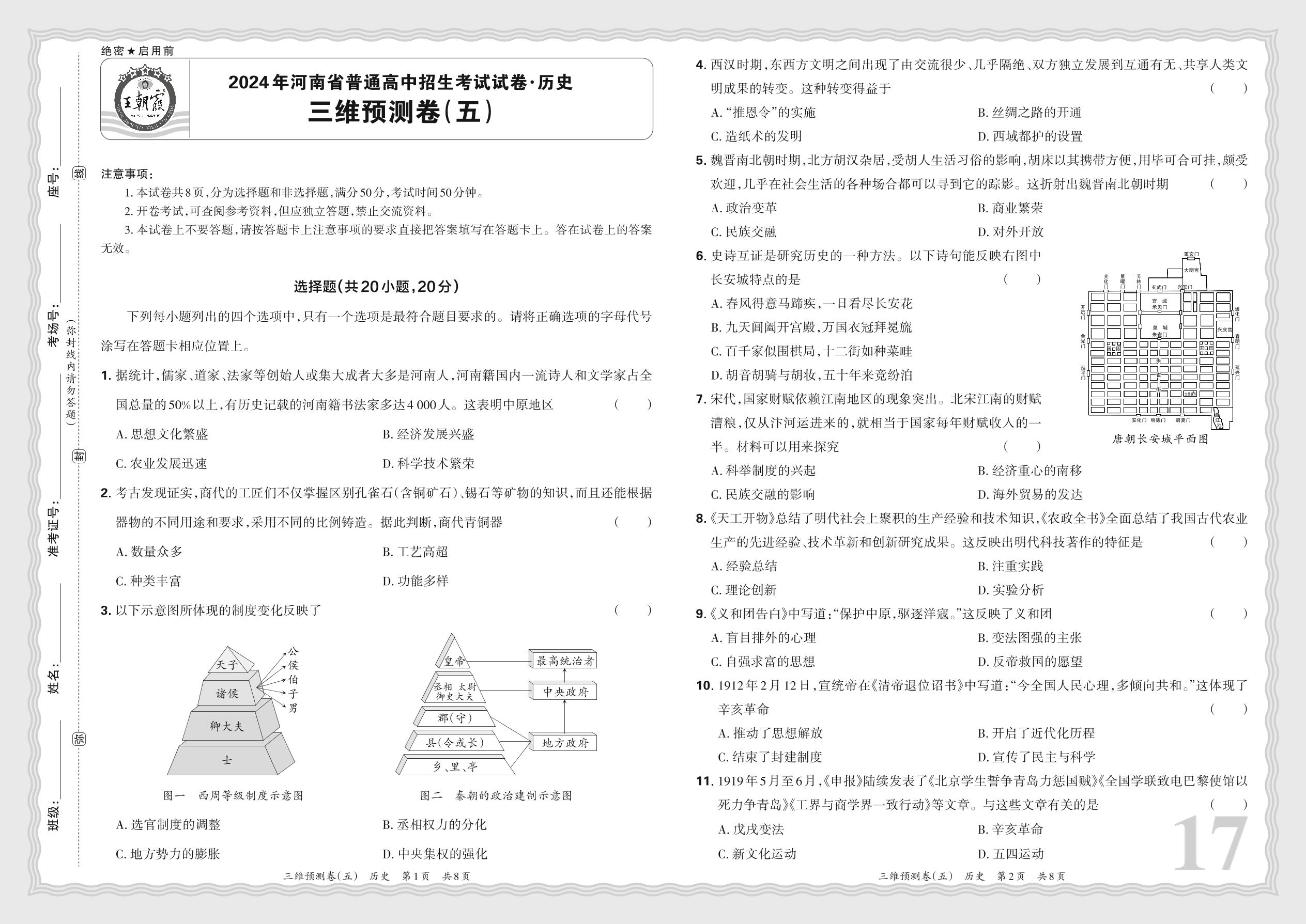 2024年河南省普通高中招生考试试卷·历史 三维预测卷(五)