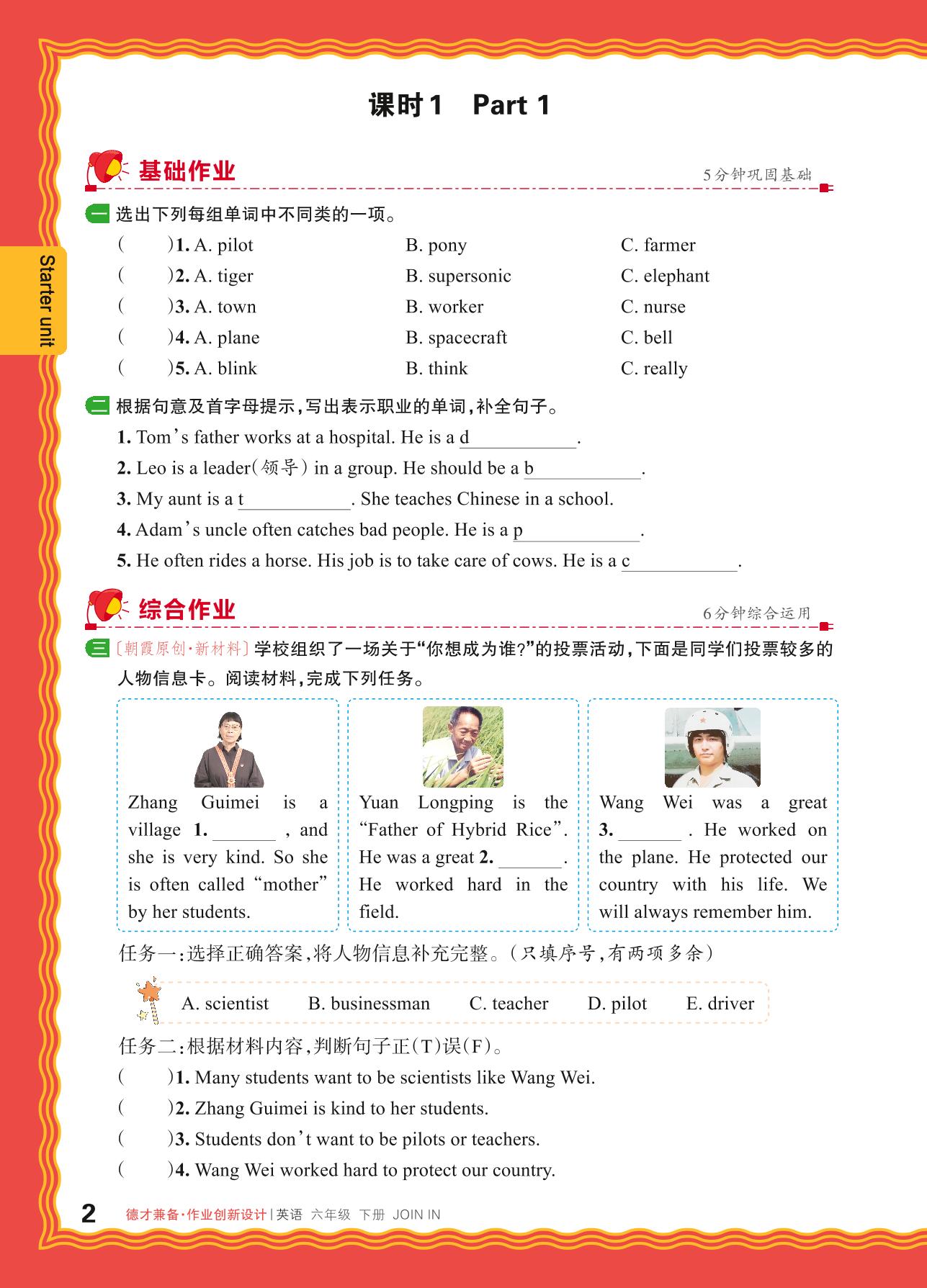 2024春下册六年级英语剑桥版 Starter unit—课时1 Part 1