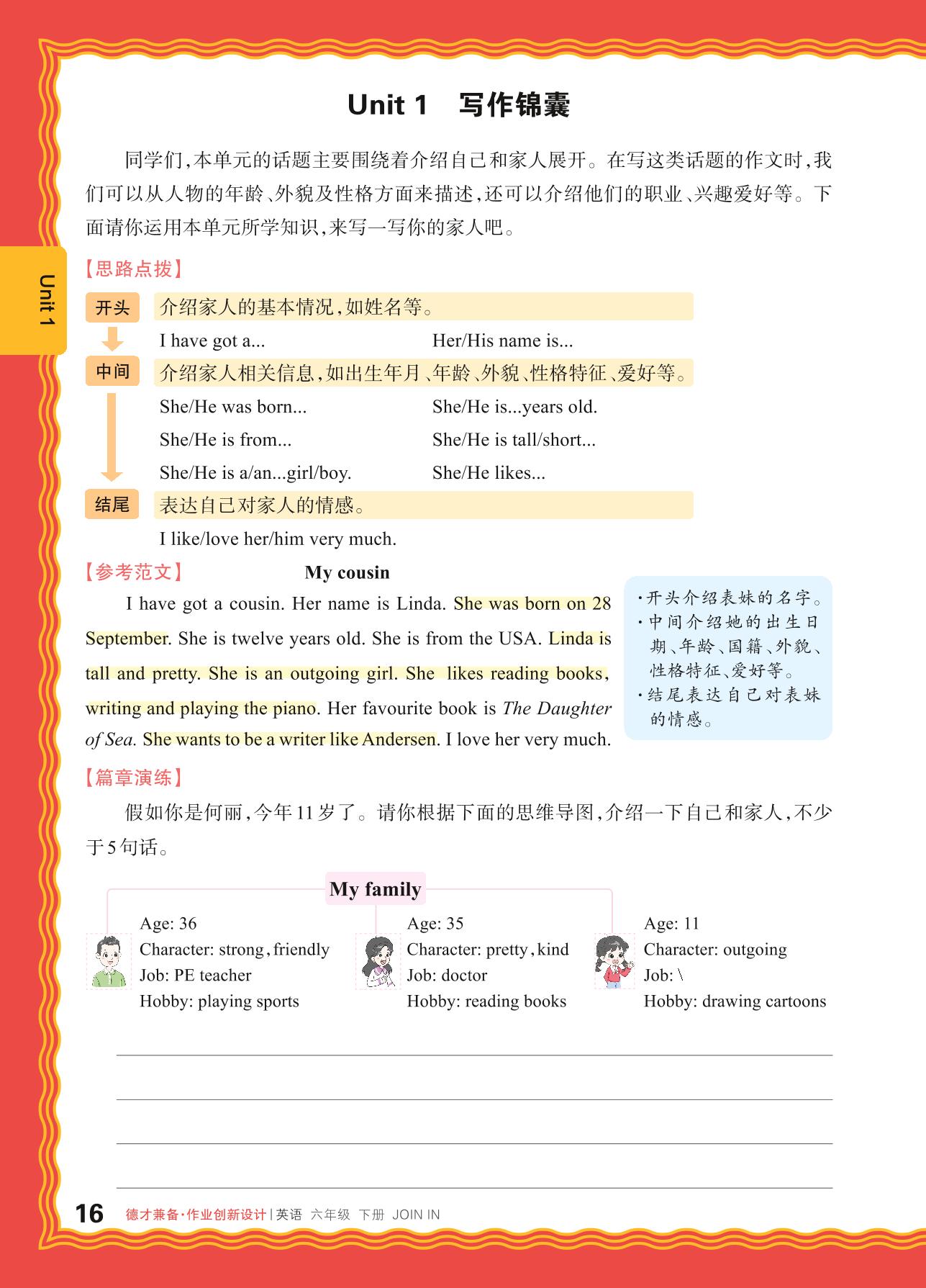 2024春下册六年级英语剑桥版 Unit 1 写作锦囊