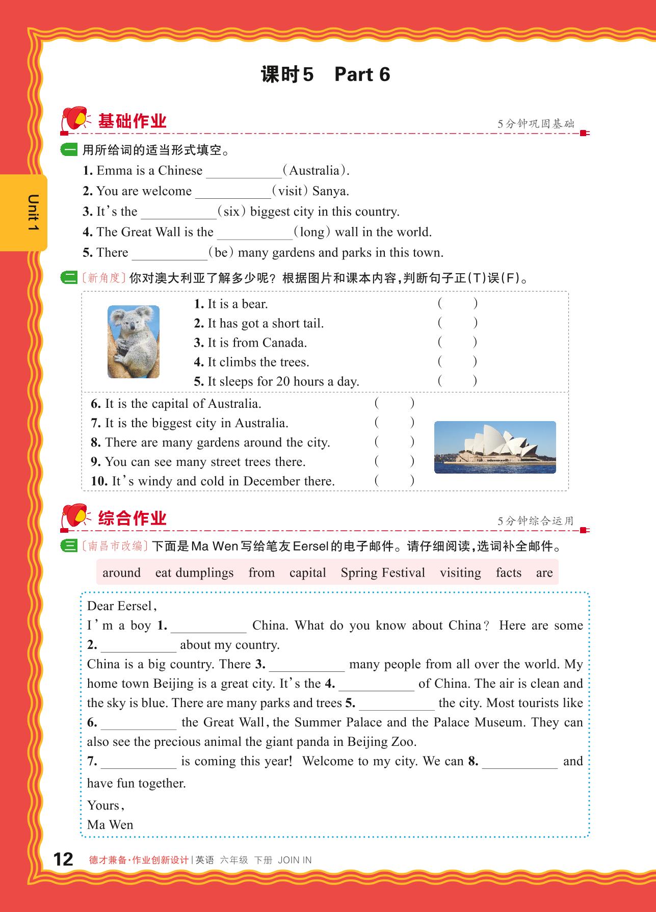 2024春下册六年级英语剑桥版 Unit 1—课时5 Part 6