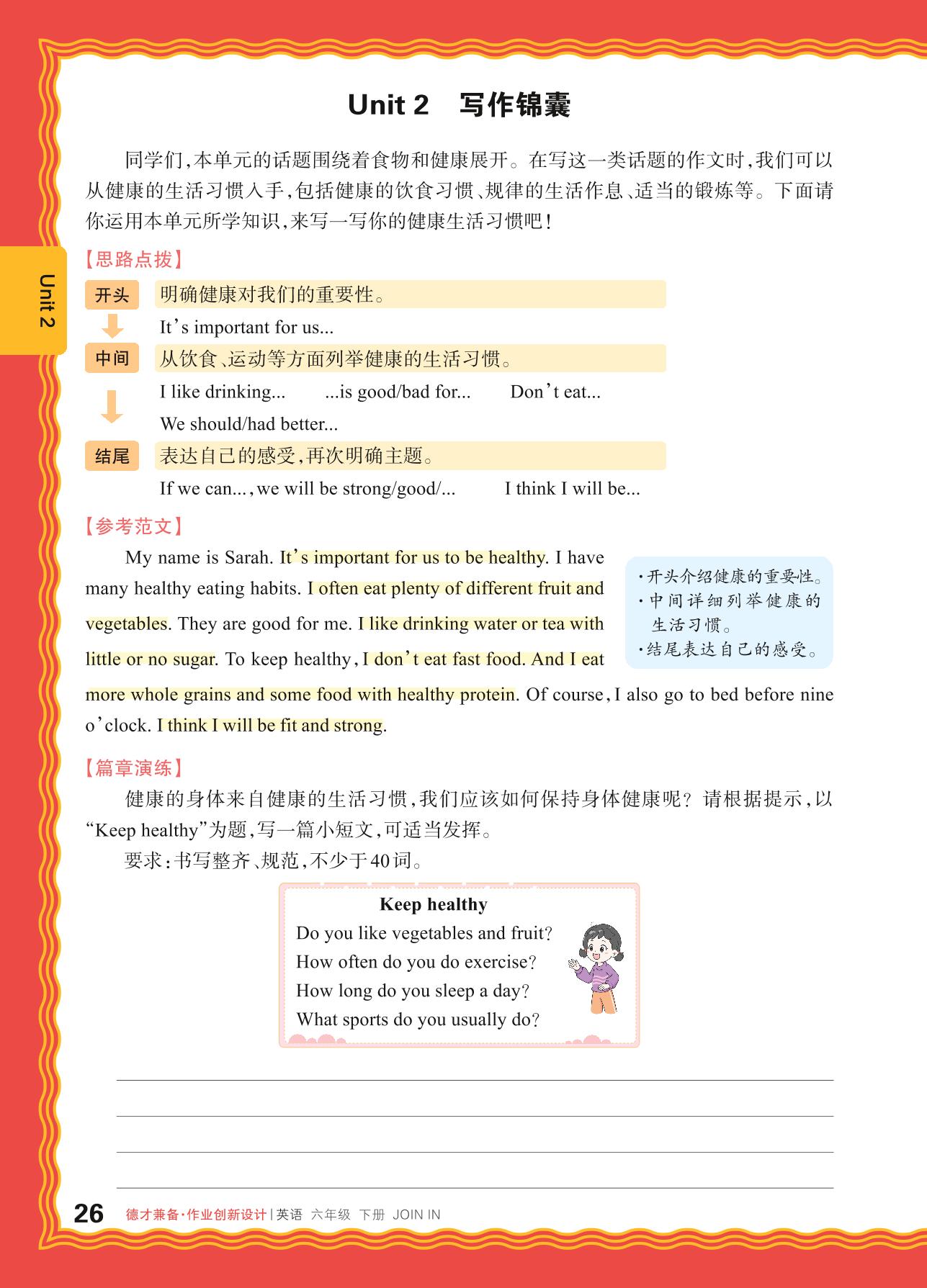 2024春下册六年级英语剑桥版 Unit 2 写作锦囊