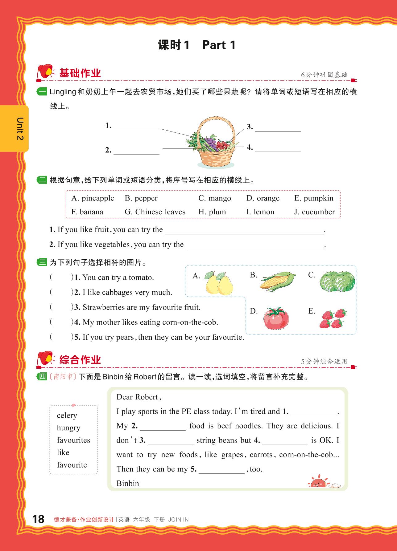 2024春下册六年级英语剑桥版 Unit 2—课时1 Part 1