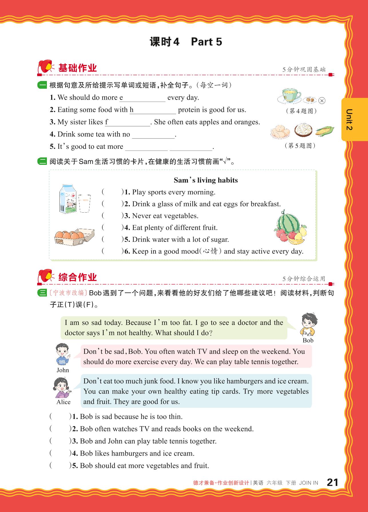 2024春下册六年级英语剑桥版 Unit 2—课时4 Part 5
