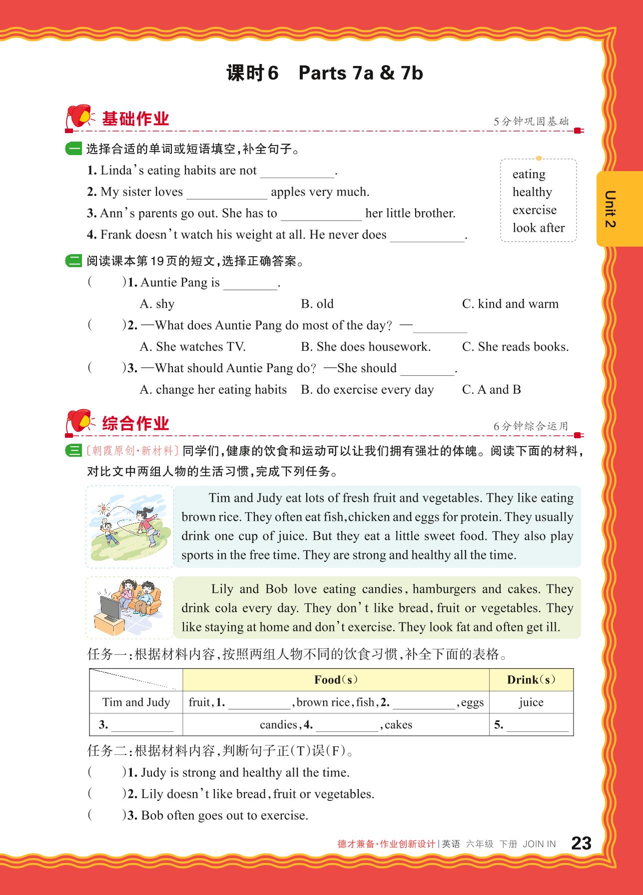 2024春下册六年级英语剑桥版 Unit 2—课时6 Parts 7a & 7b