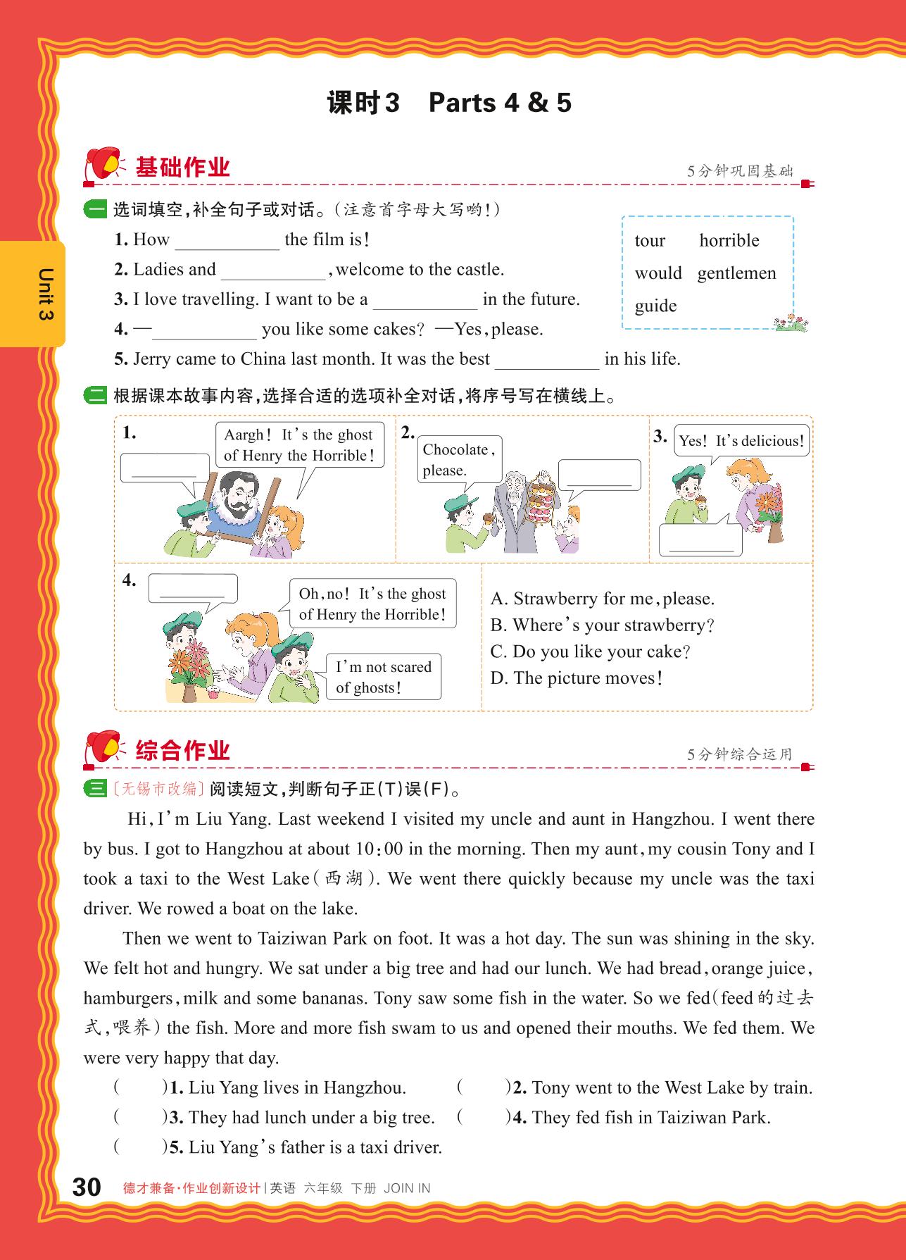 2024春下册六年级英语剑桥版 Unit 3—课时3 Parts 4 & 5