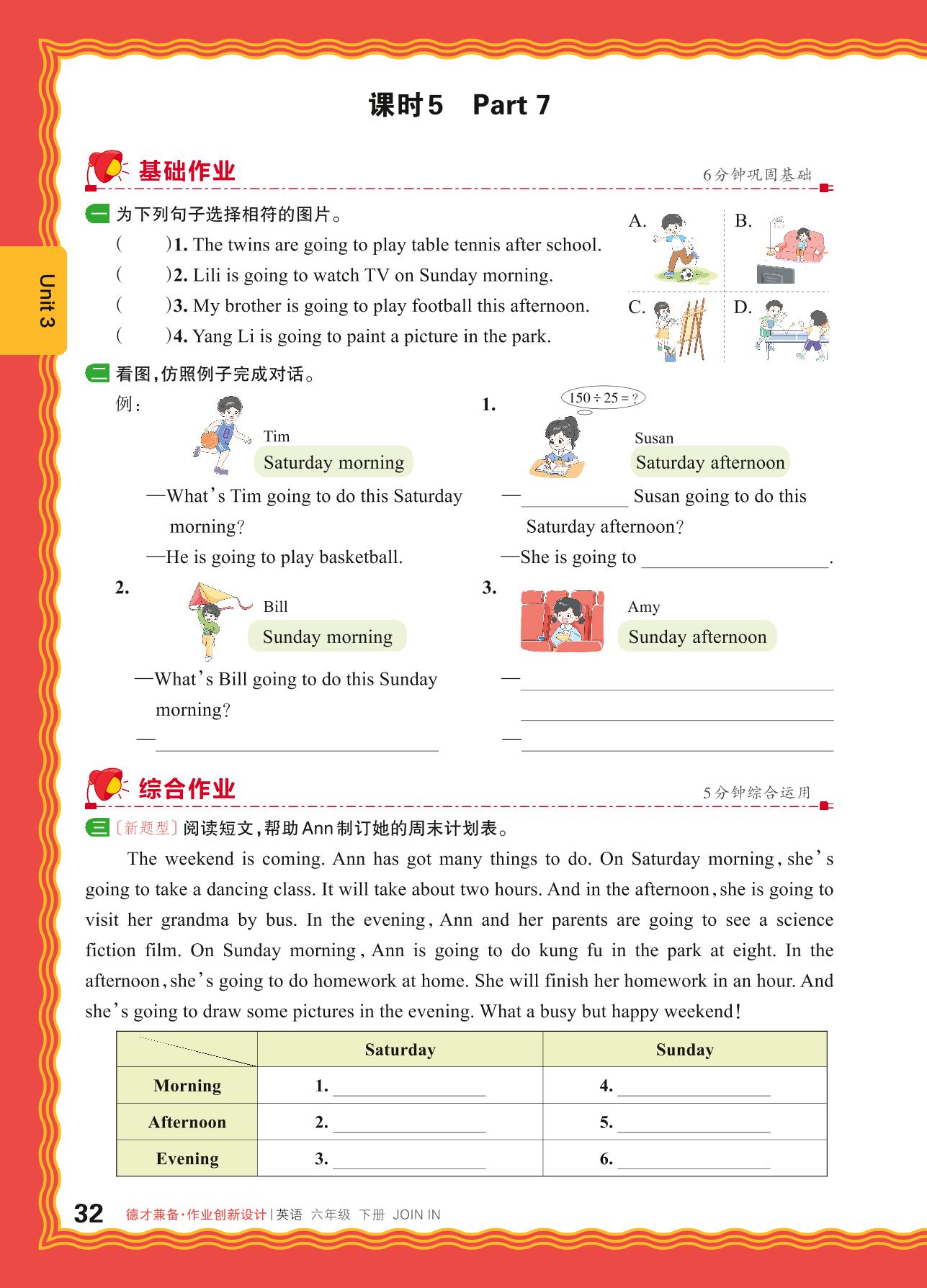 2024春下册六年级英语剑桥版 Unit 3—课时5 Part 7
