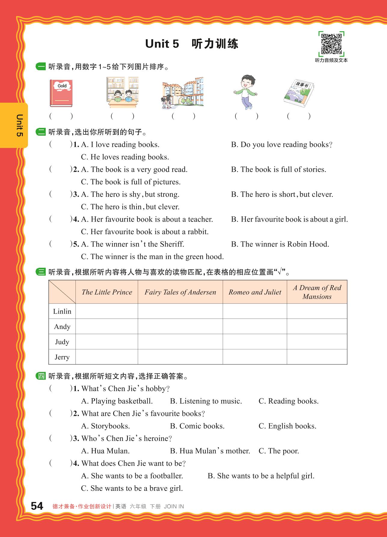 2024春下册六年级英语剑桥版 Unit 5 听力训练