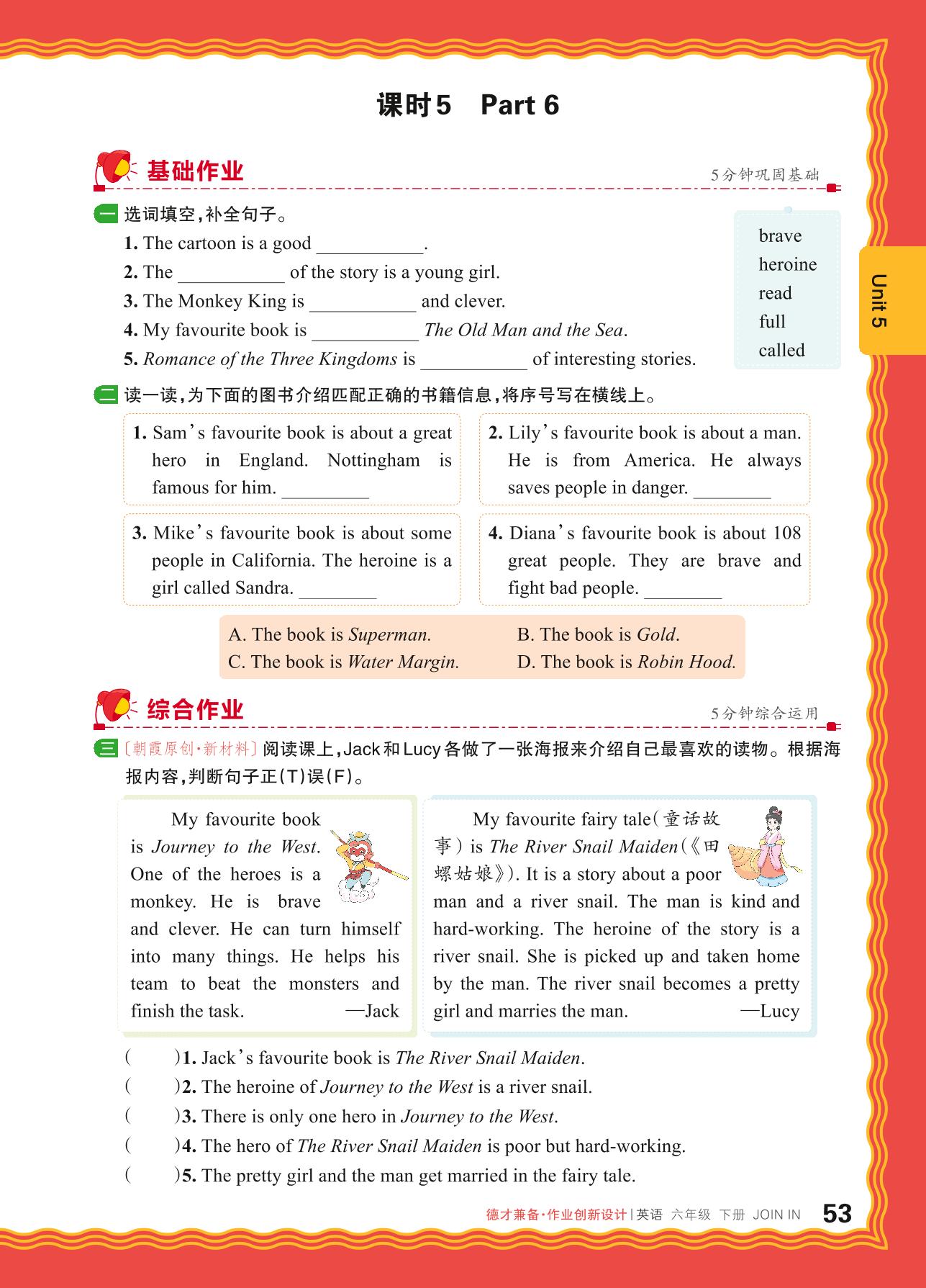 2024春下册六年级英语剑桥版 Unit 5—课时5 Part 6