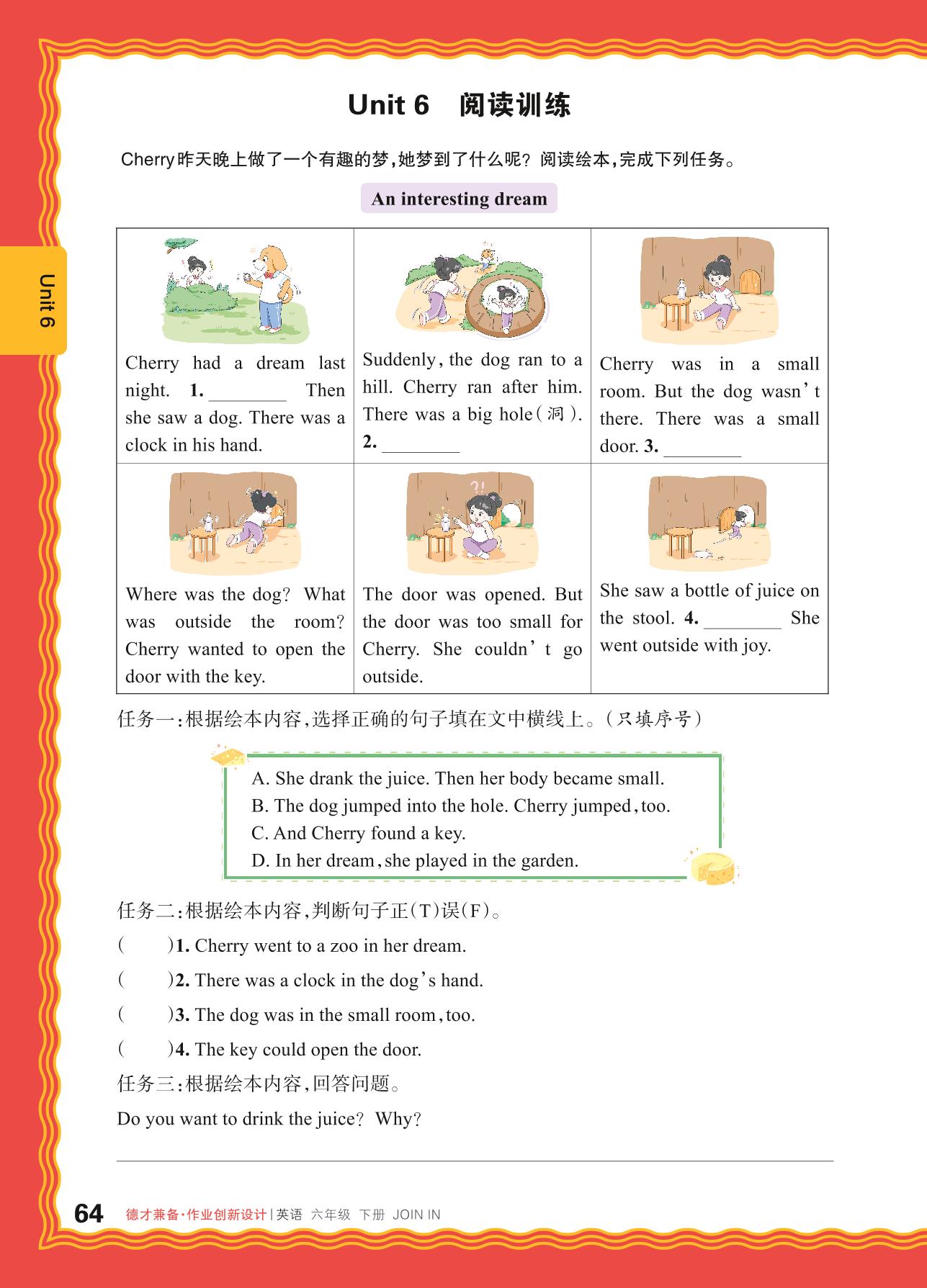 2024春下册六年级英语剑桥版 Unit 6 阅读训练