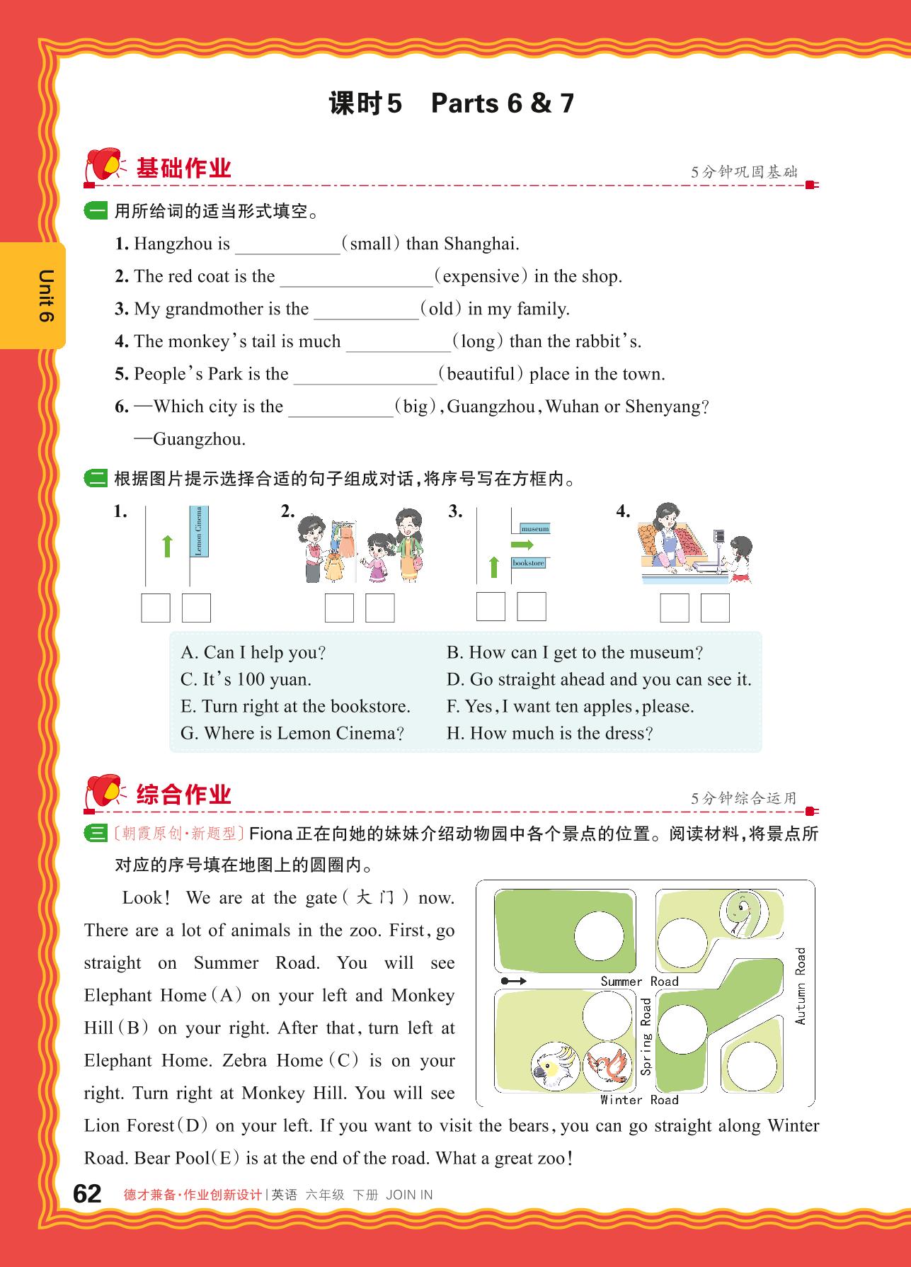 2024春下册六年级英语剑桥版 Unit 6—课时5 Parts 6 & 7