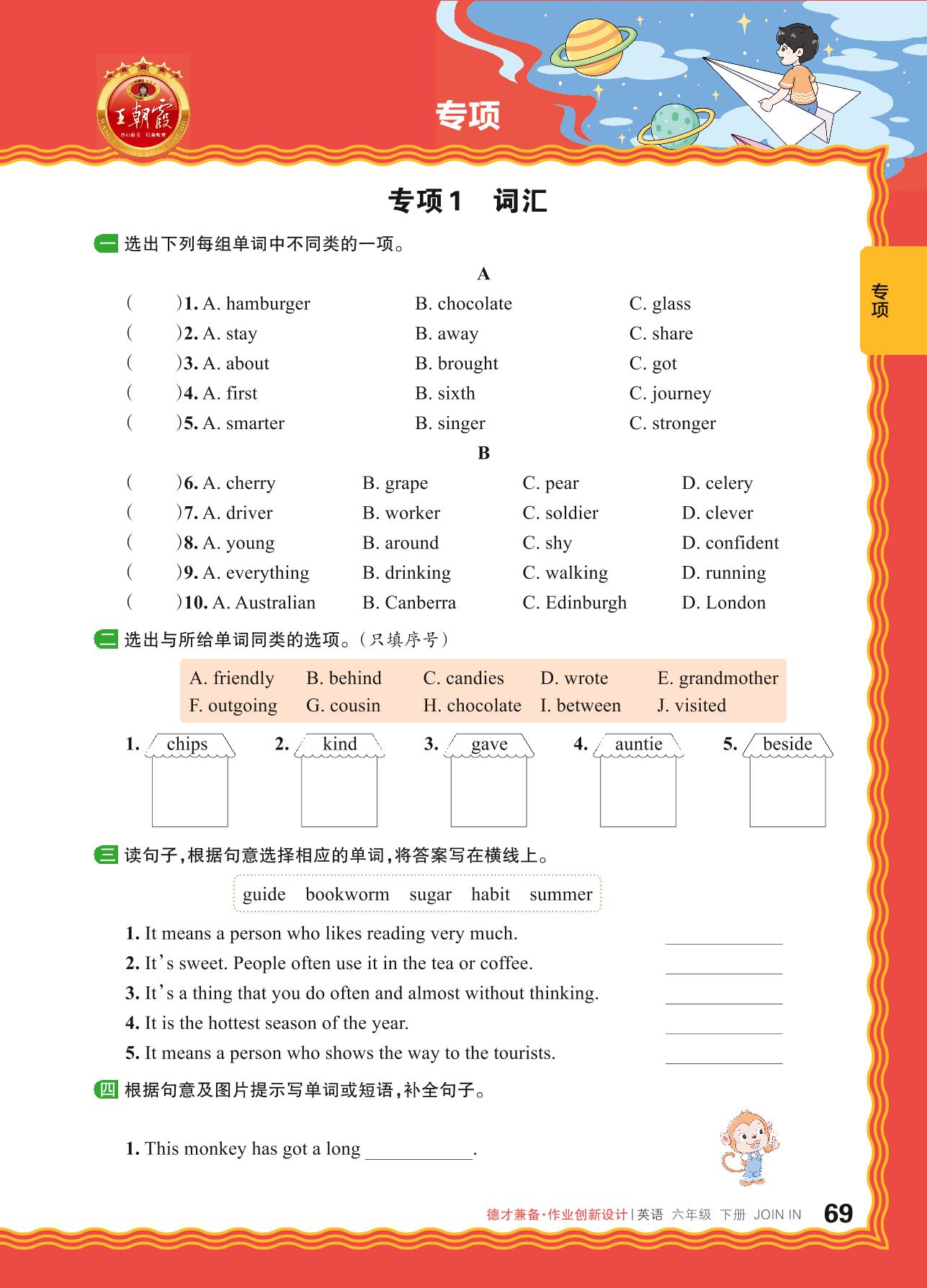2024春下册六年级英语剑桥版 期末专项卷DC版·词汇【1】