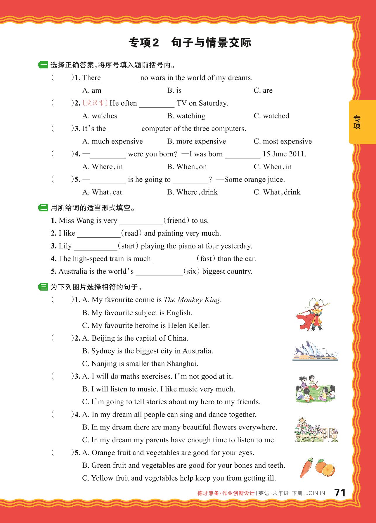 2024春下册六年级英语剑桥版 期末专项卷DC版·句子与情景交际【2】