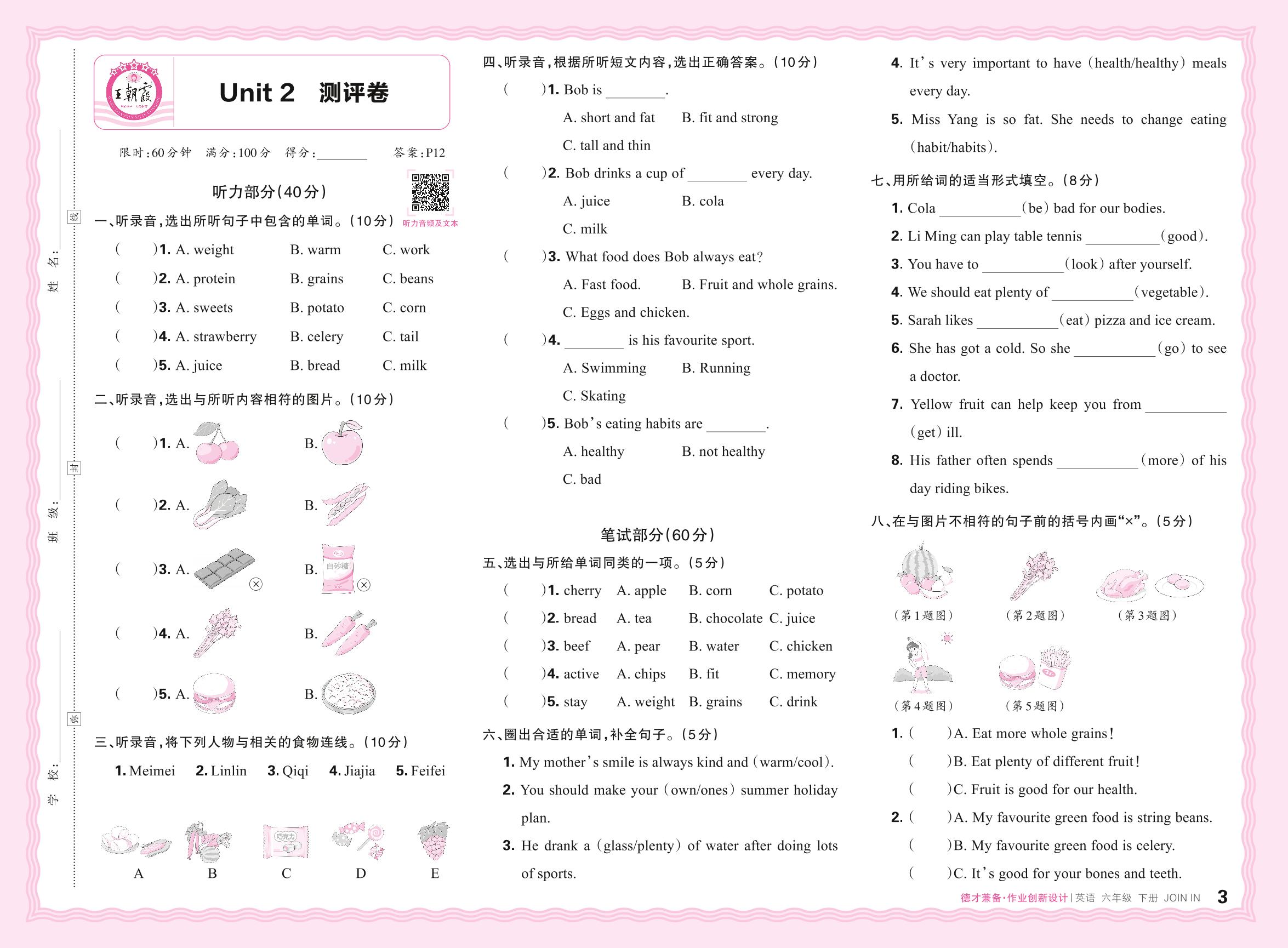 2024春下册六年级英语剑桥版 Unit 2 测评卷