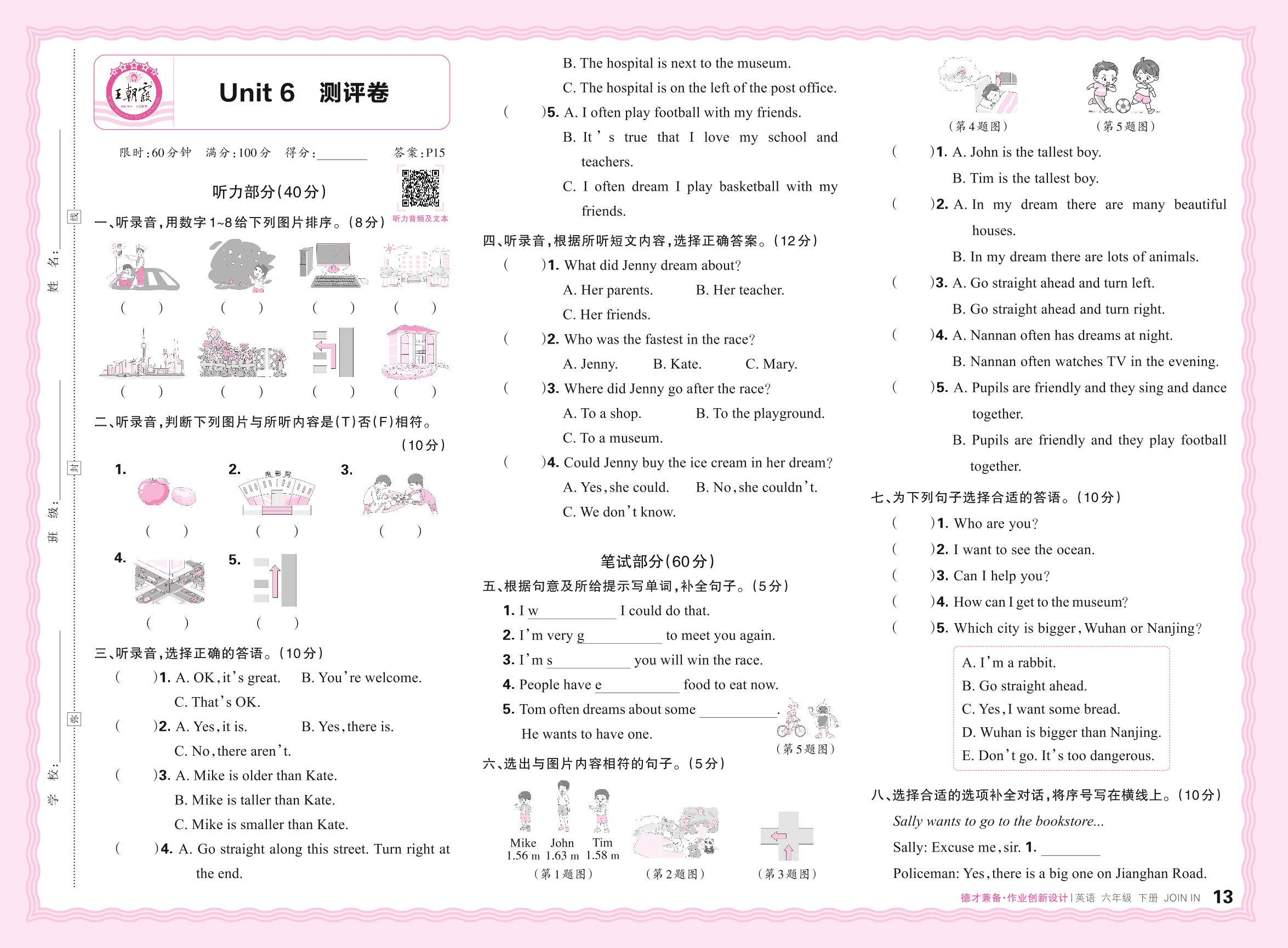 2024春下册六年级英语剑桥版 Unit 6 测评卷
