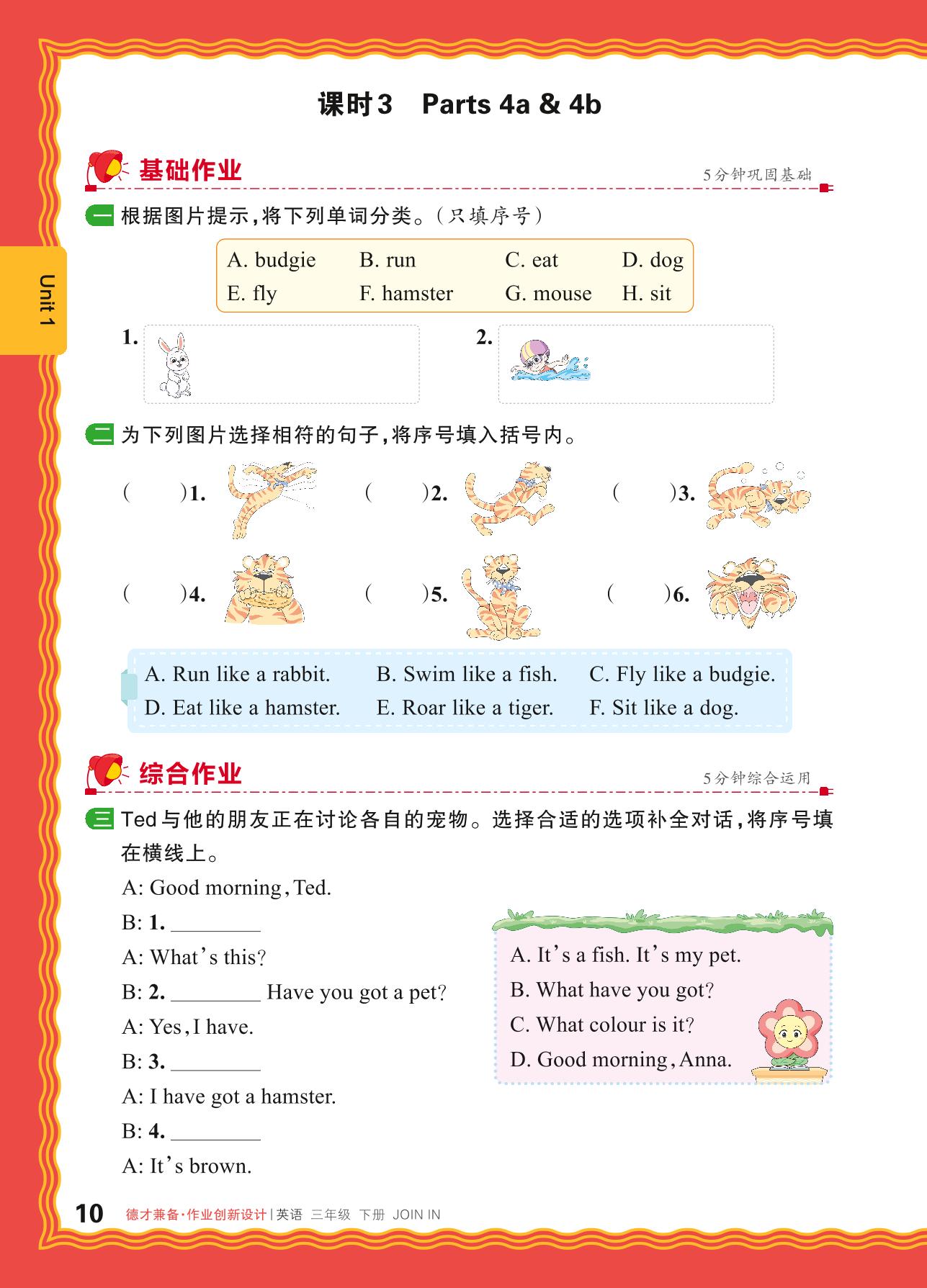 2024春下册三年级英语剑桥版 Unit 1—课时 3 Parts 4a & 4b
