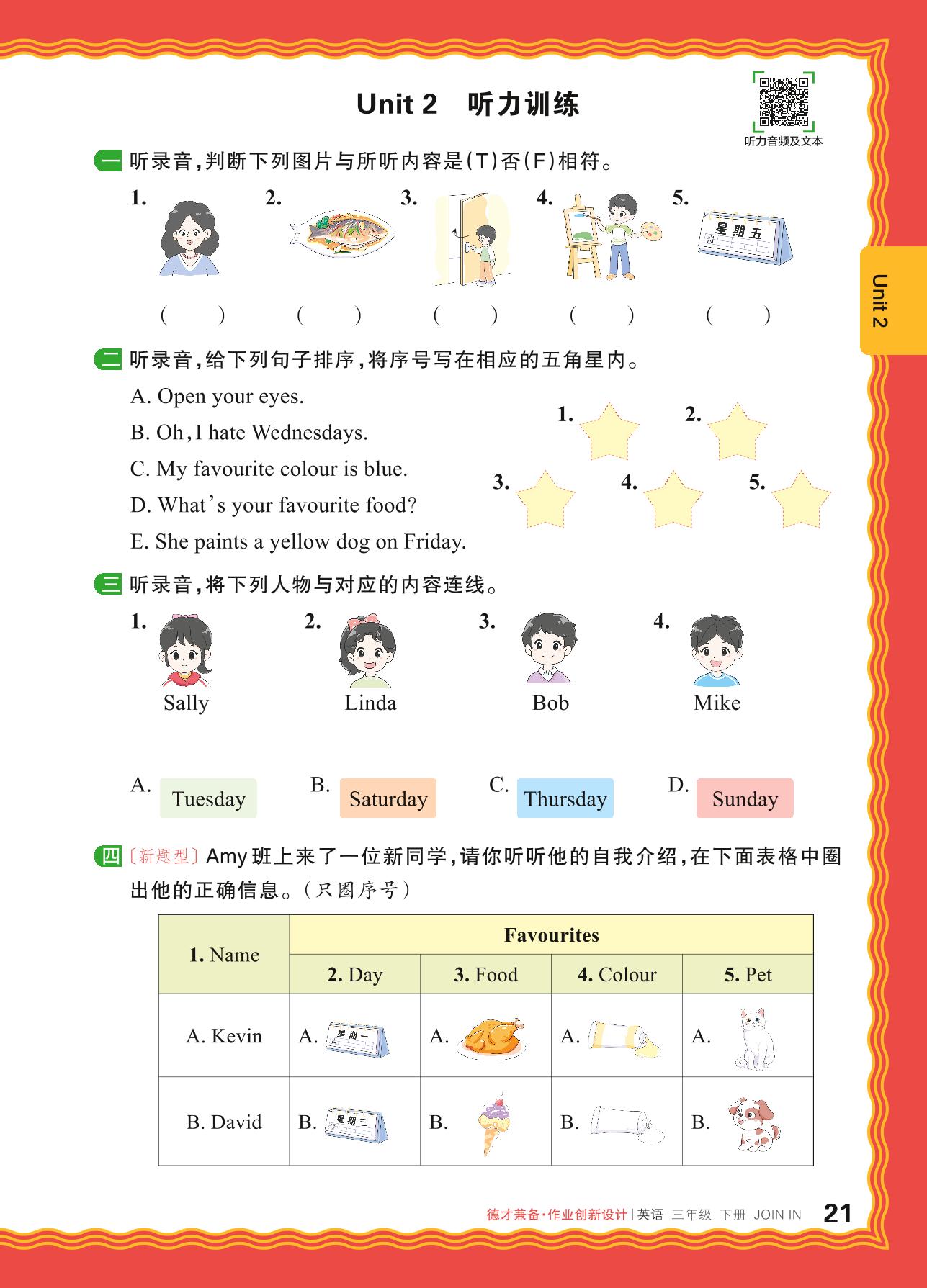 2024春下册三年级英语剑桥版 Unit 2 听力训练